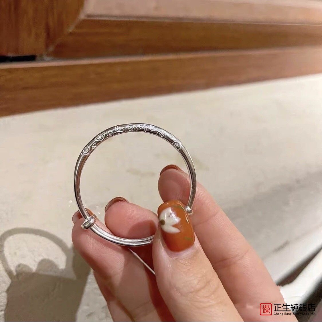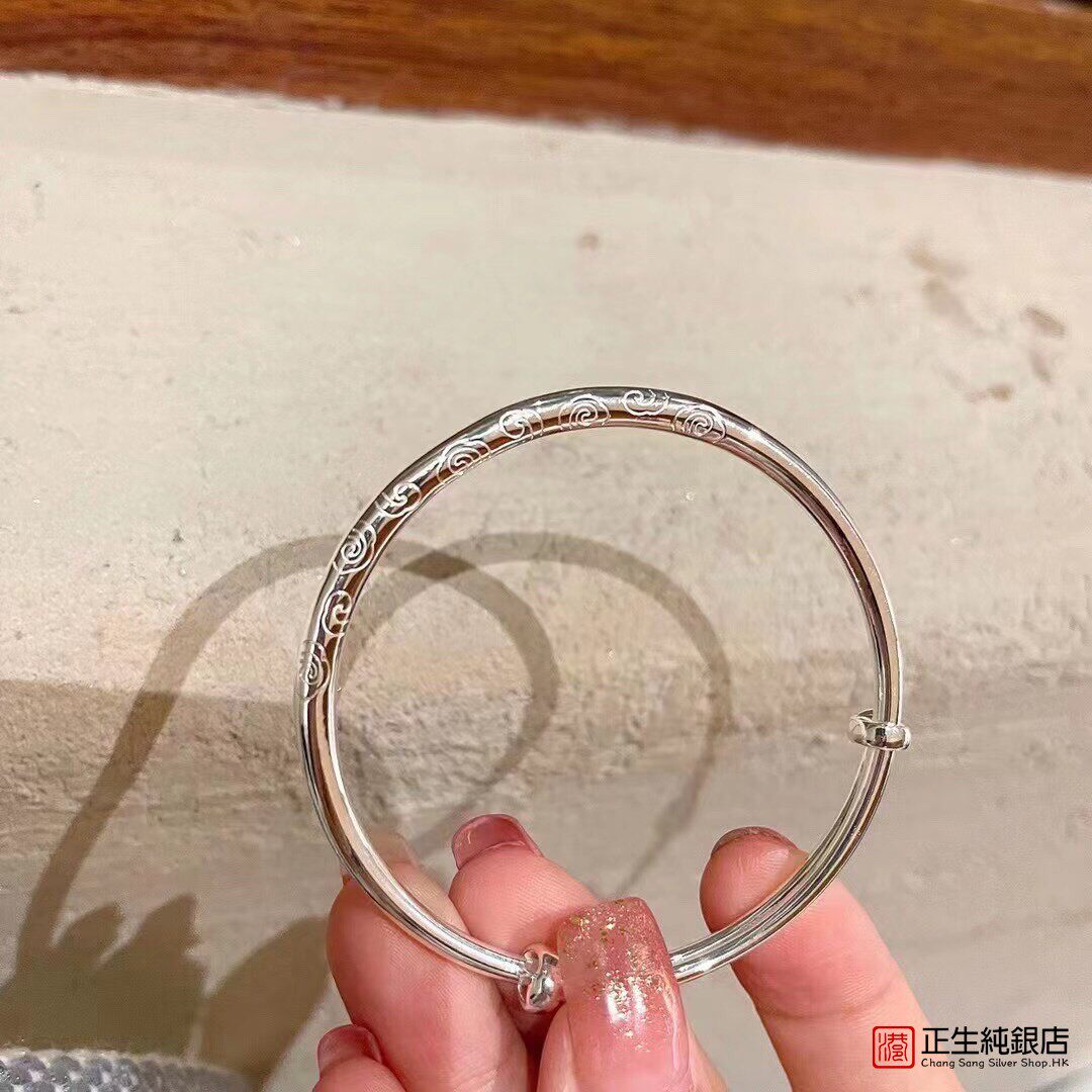 📚 香港正生纯银s999祥云光圈足银手镯亲子款中大童推拉手环简约新品