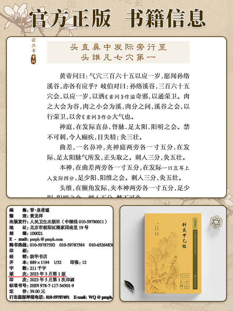 18¥ CZ225 MHYj5iy0yhd¥ https://m.tb.cn/h.iH1uoOI 针灸甲乙经中医临床必读丛书重刊 皇甫谧编黄龙祥整理中医古籍临床医学丛书中医针灸学入门自学书籍黄龙祥针灸大成 人民卫生出版社 --------------------- 【原售价】39元 【现售价】25.4元。