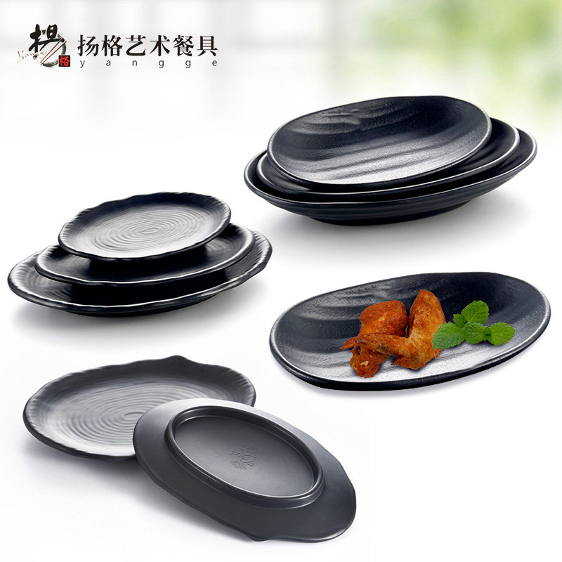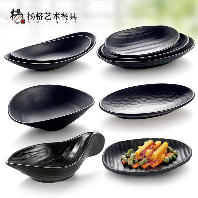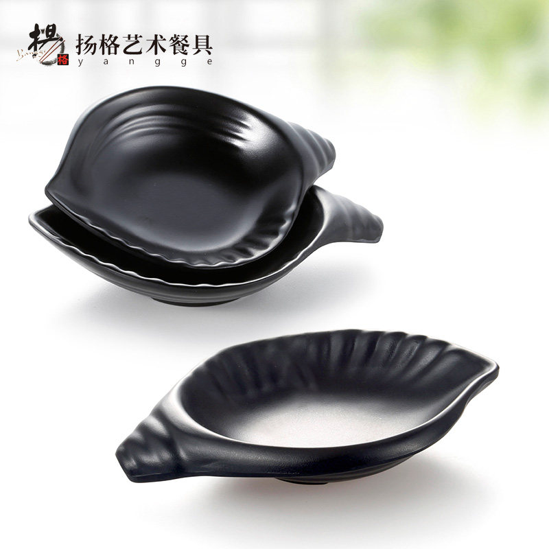 📚 扬格黑色韩式异形船形磨砂黑创意元宝蛋糕料理烧烤零食生肉点心盘