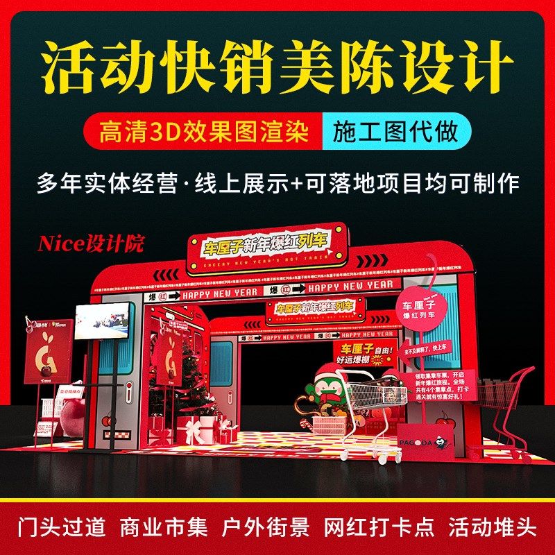 📚 3d美陈设计商场橱窗展位新年dp点活动市集摊位快闪店门头效果图