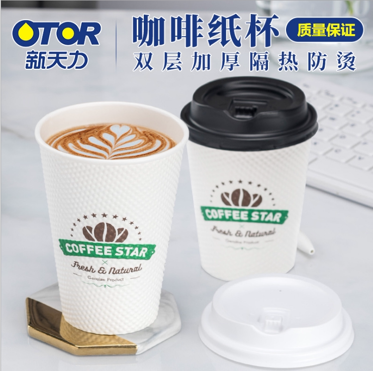📚 新天力高档咖啡奶茶纸杯一次性双层隔热防烫带盖商用热饮杯可定制
