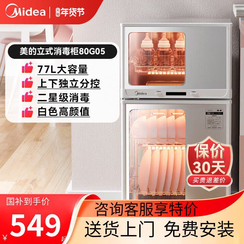 📚 美的厨房家用立式碗筷消毒台式烘干一体小型白色二星消毒柜80G05