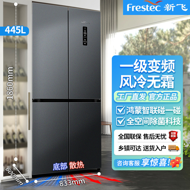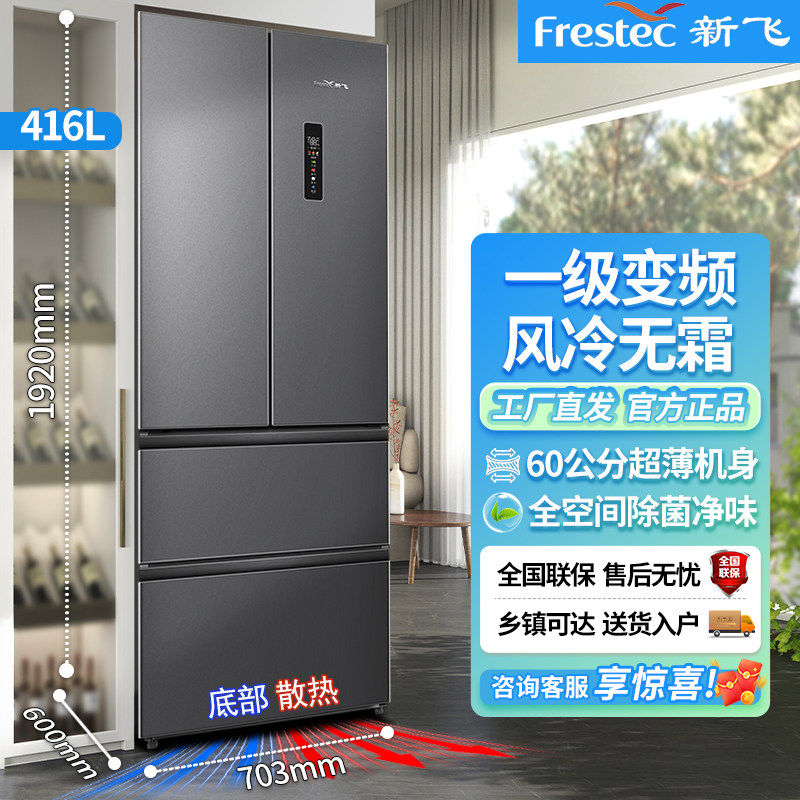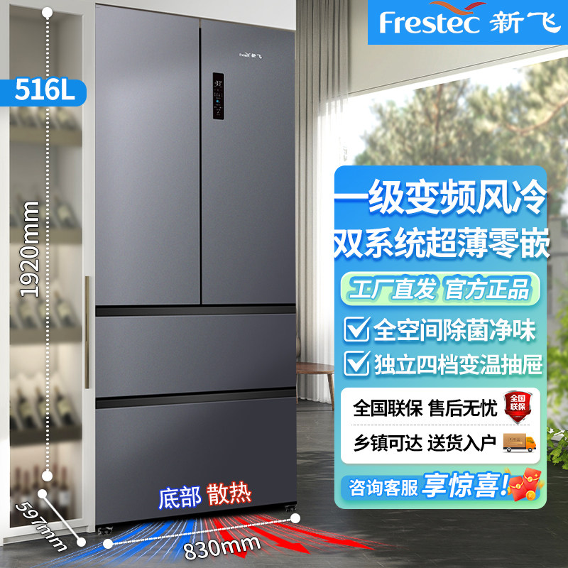 📚 新飞416/518L法式十字四门冰箱超薄零嵌入底部散热一级变频双循环