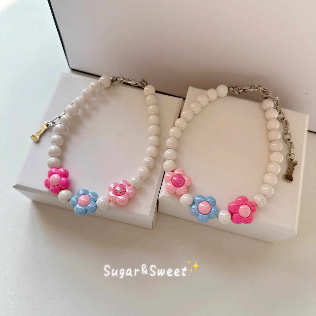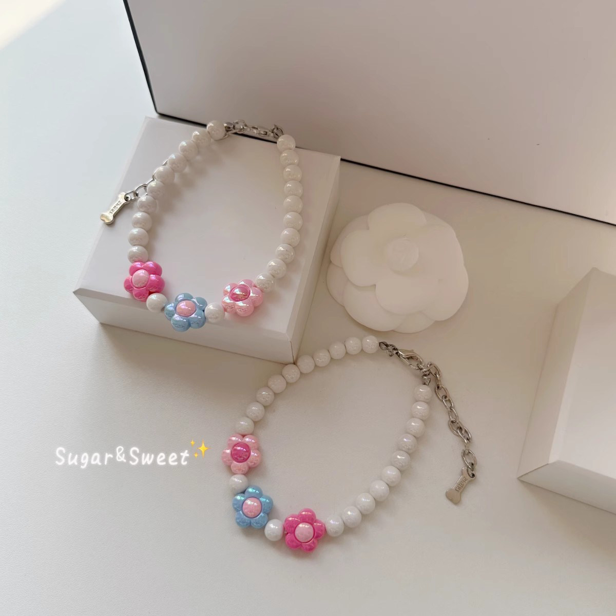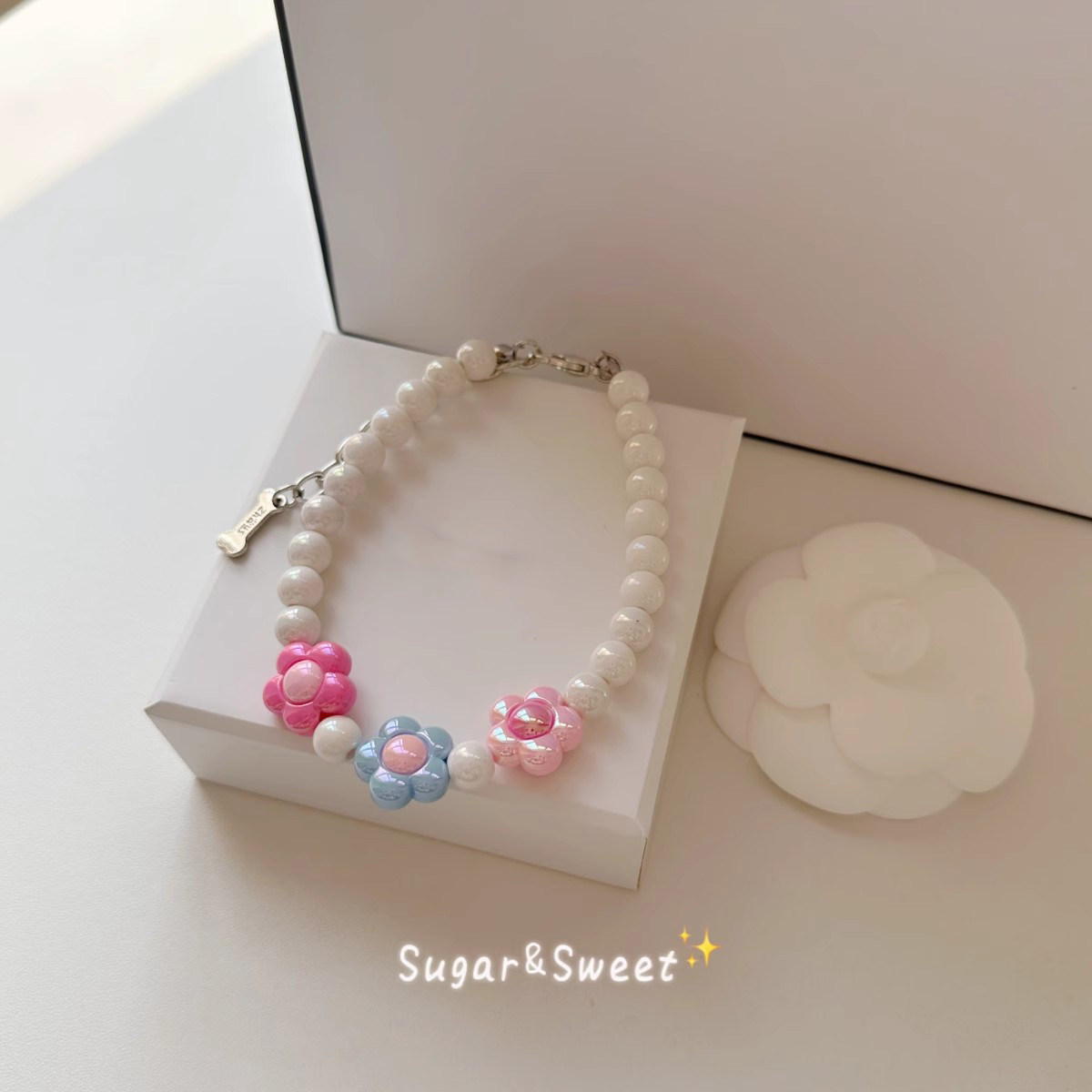📚 宠物项链猫咪狗狗珍珠颈链粉色花朵时尚可爱脖圈项圈比熊泰迪布偶