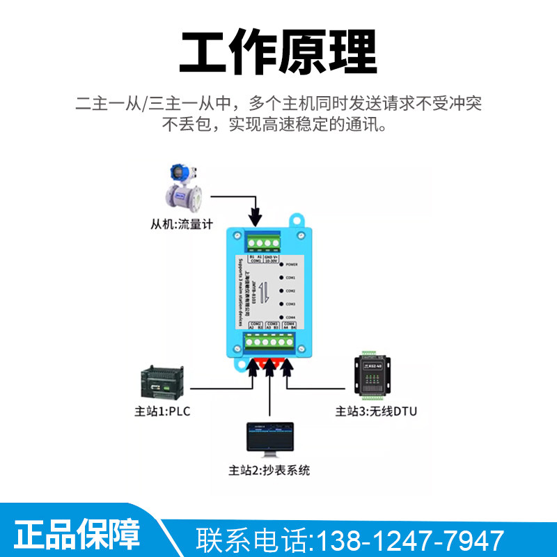 📚 二主一从rs485中继器缓存modbus双主机集线器两主工业级信号扩展