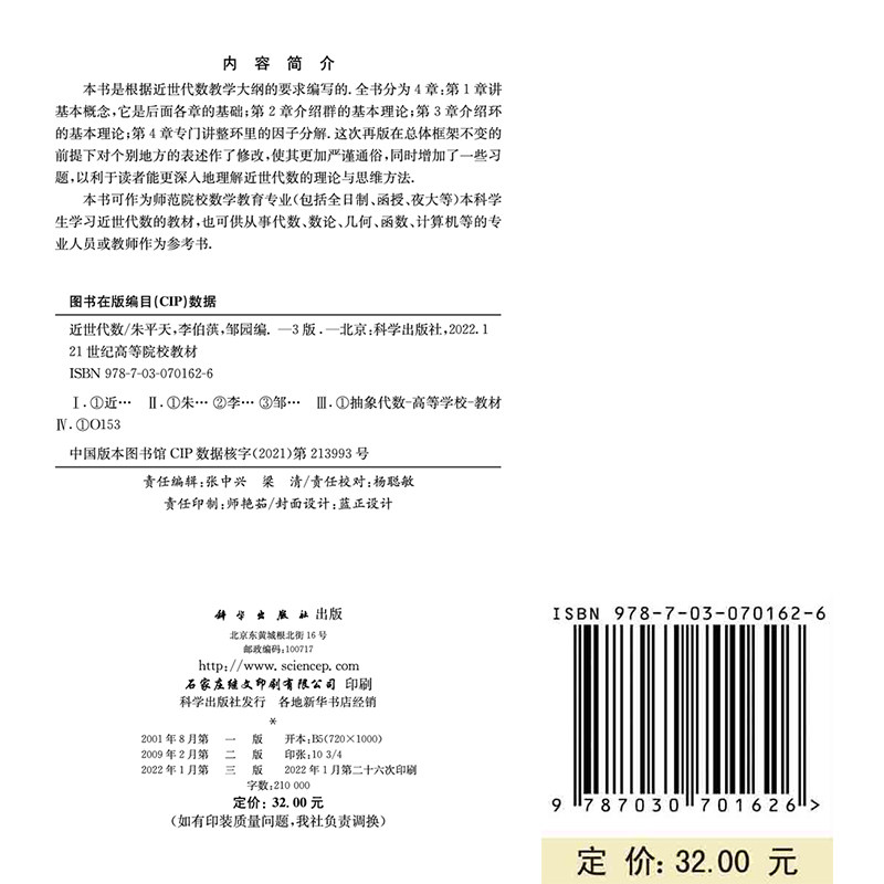 📚 现货近世代数第三版21世纪高等院校教材朱平天李伯葓邹园编科学出版社9787030701626