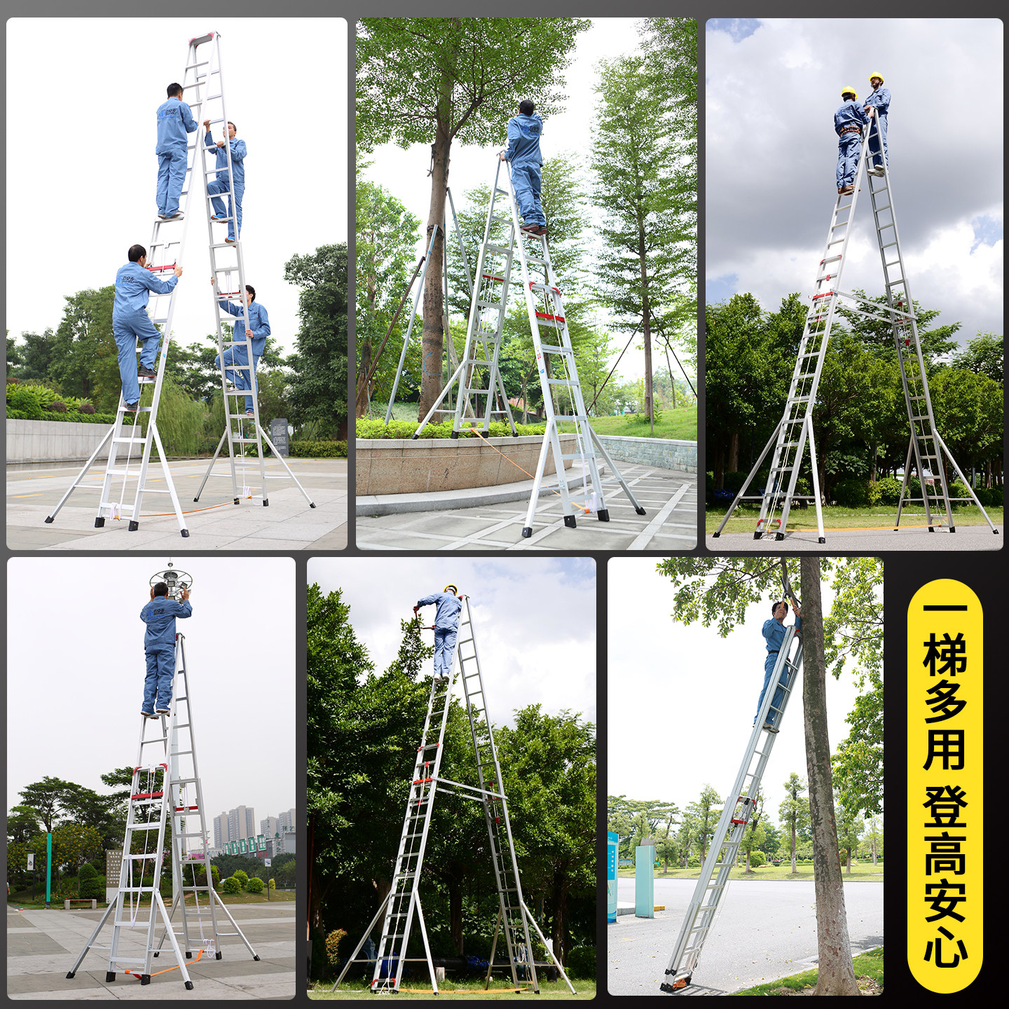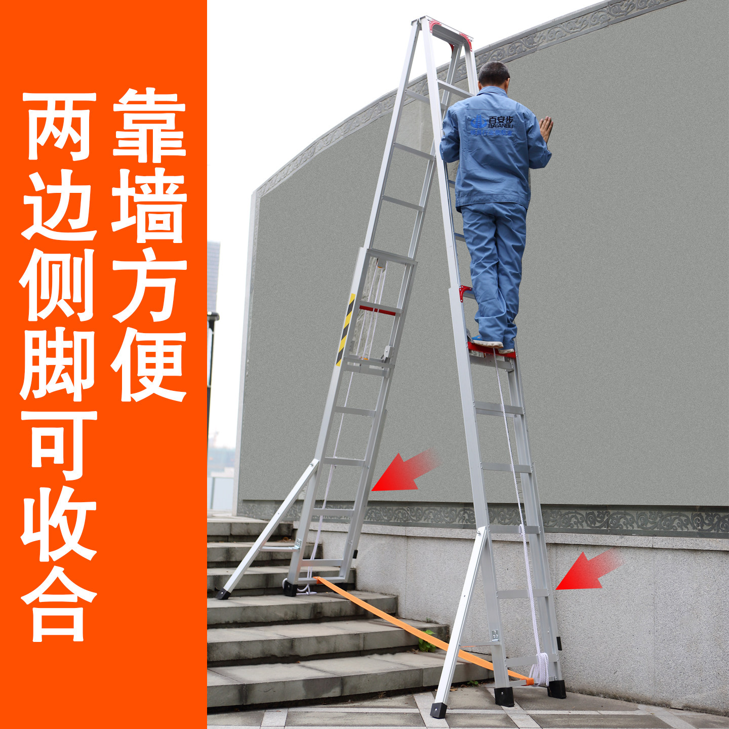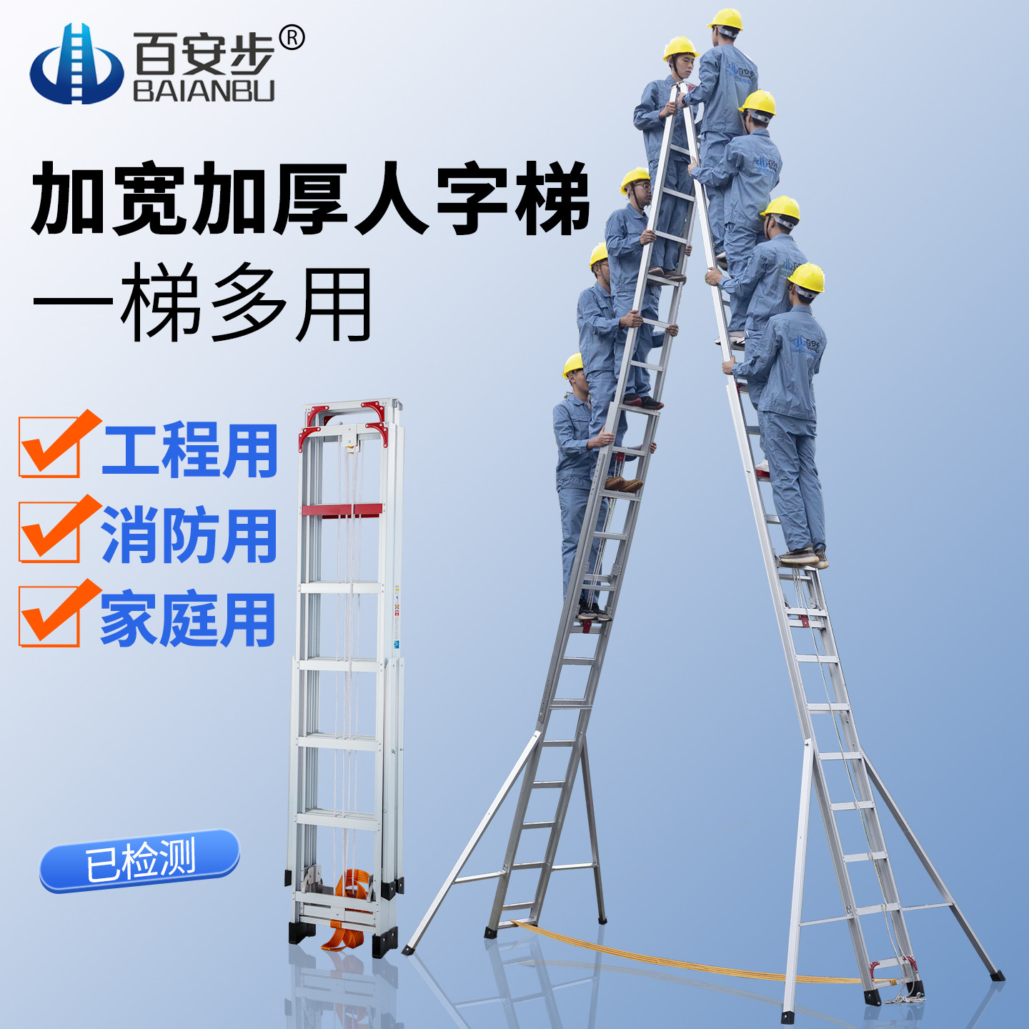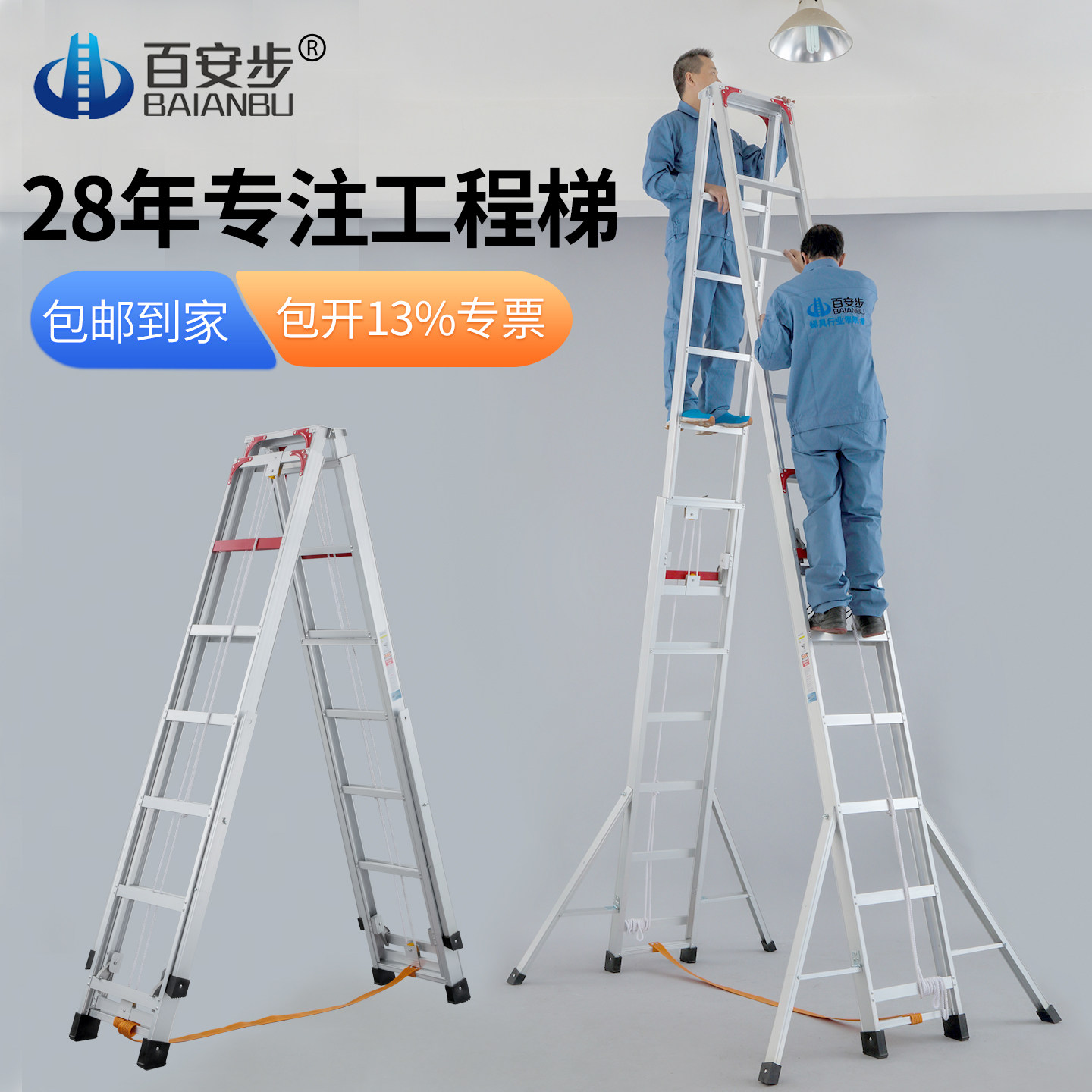 📚 百安步人字梯子铝合金加粗加厚加固工程专用伸缩梯升降6米-12耐用