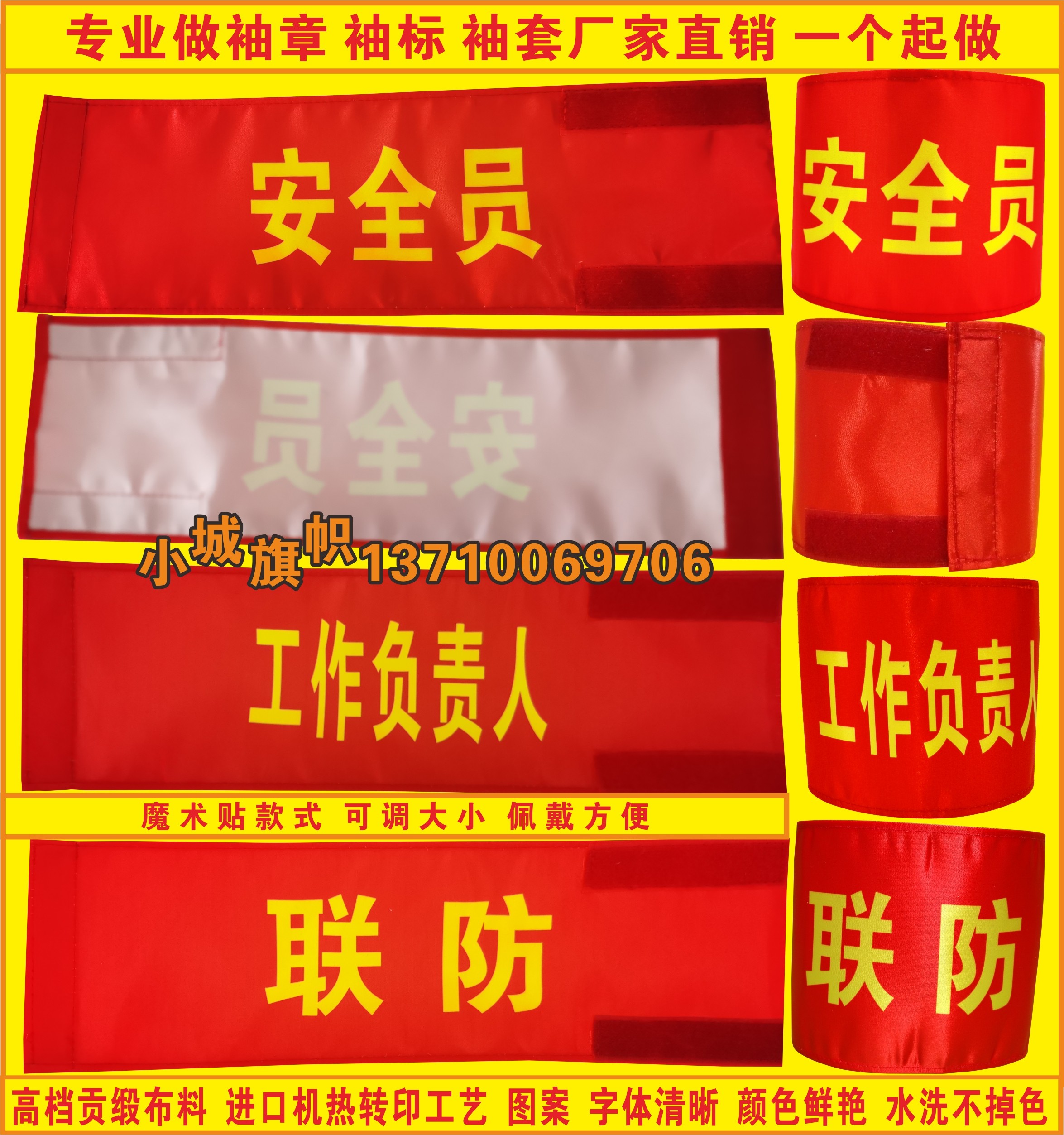 📚 定制魔术贴袖章南方电网安全员工作负责人专责监护人彩色袖标