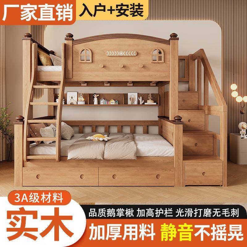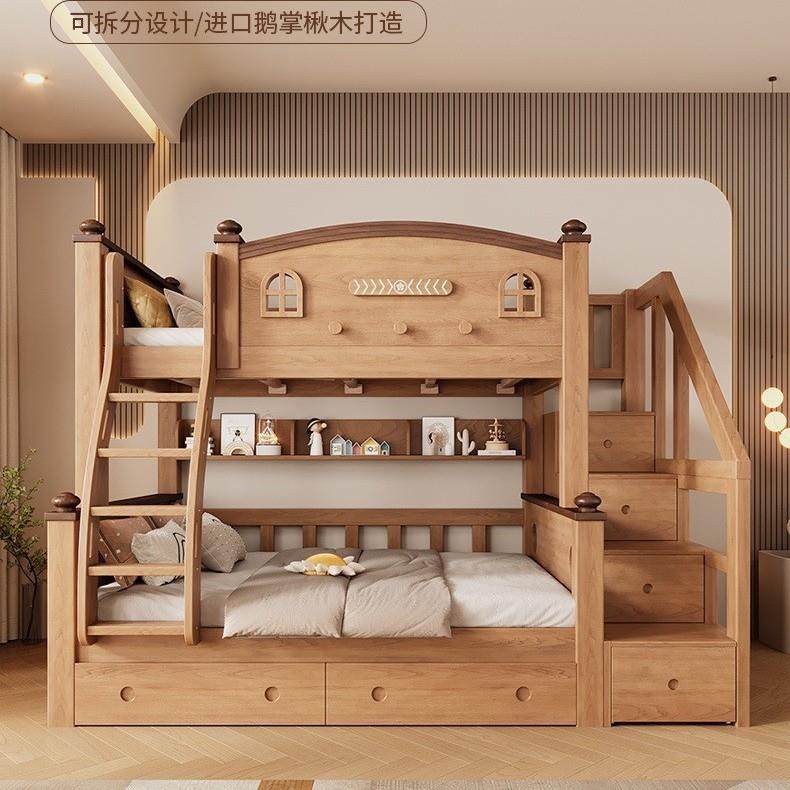 📚 全实木鹅掌楸儿童上下床双层床多功能高低子母两层上下铺加厚木床