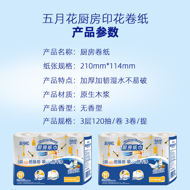 📚 五月花厨房用纸卷纸擦手纸吸油吸水抽纸料理专用厨房纸油炸纸巾