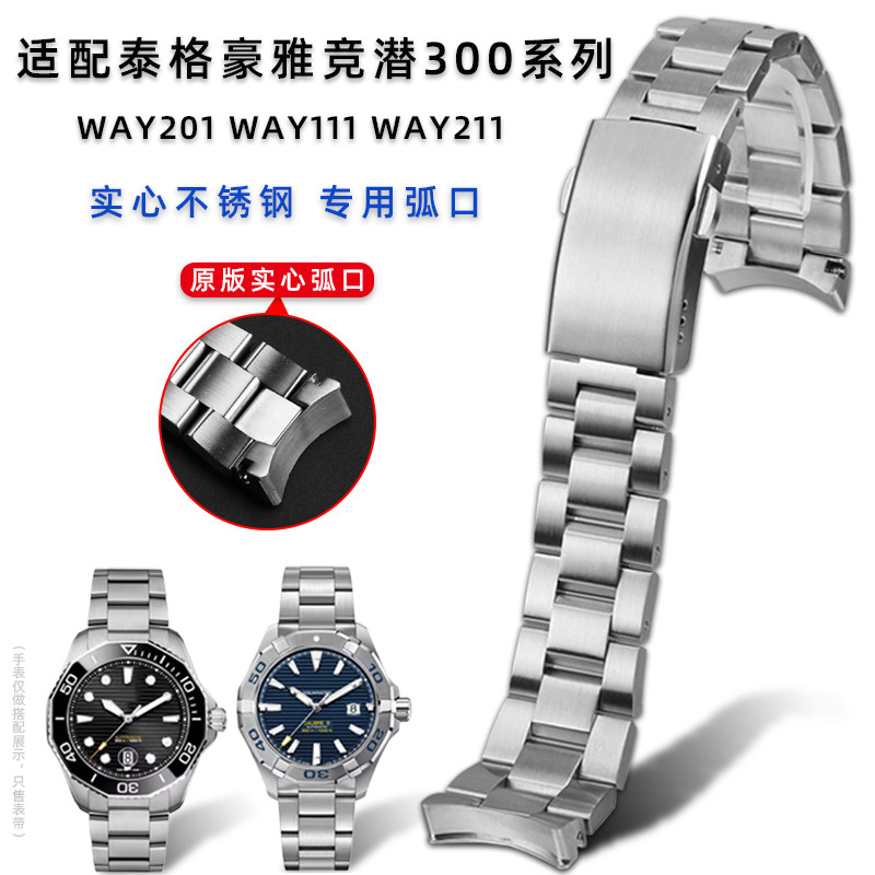 📚 适用泰格豪雅钢带竞潜300系列WAY211/WAY111A实心弧口手表带21mm