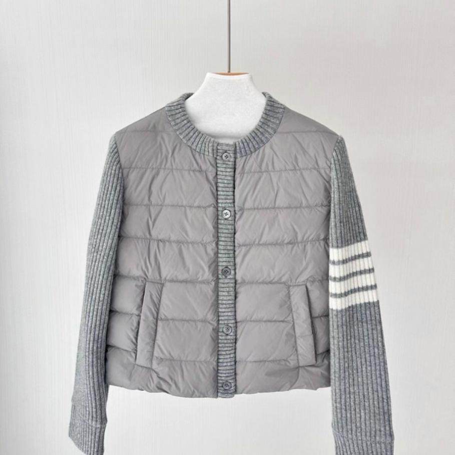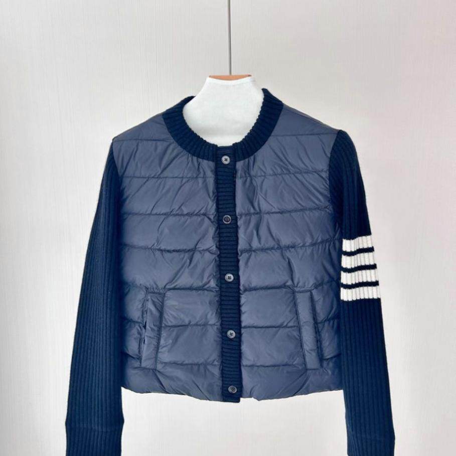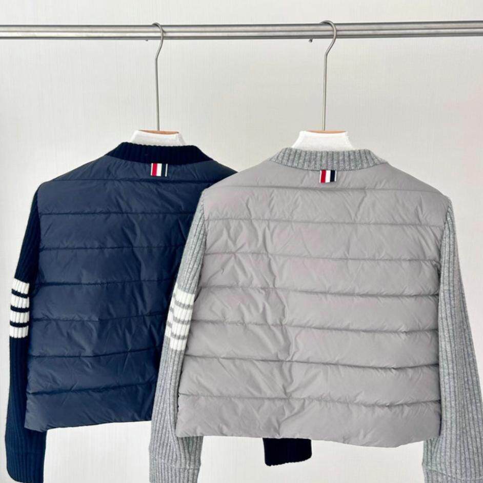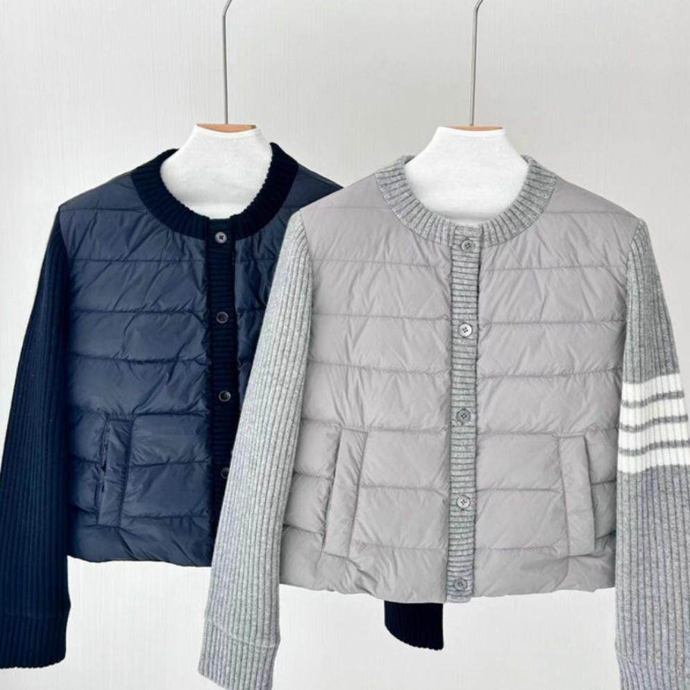 📚 断码清仓四杠经典圆领羊绒针织拼接袖轻便保暖短款白鹅绒羽绒服