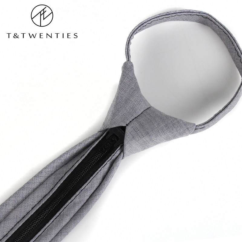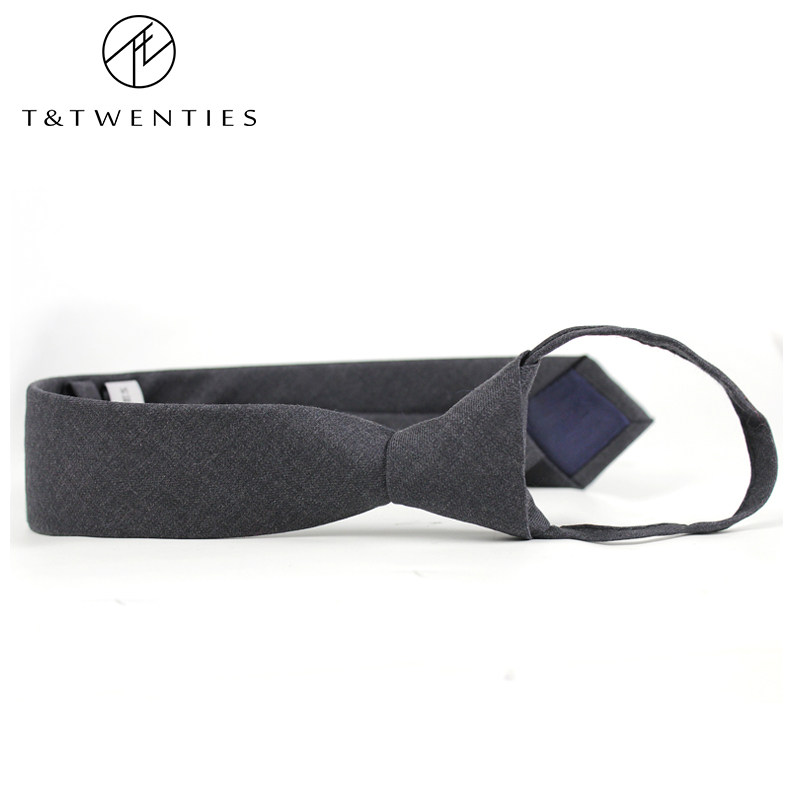 📚 哑光羊毛懒人拉链领带男 免打易拉得拉链式6cm韩版一拉得灰色复古