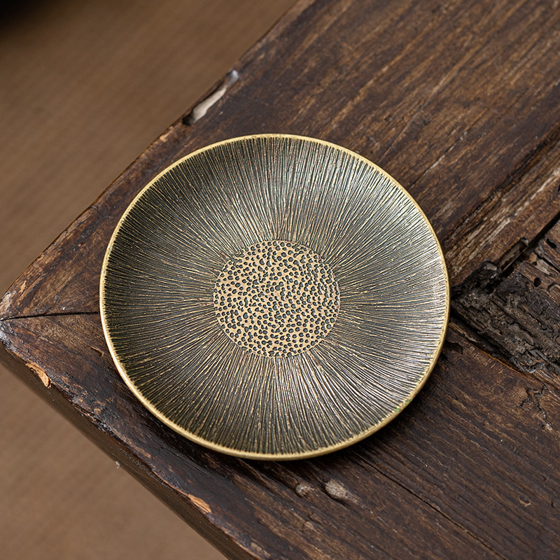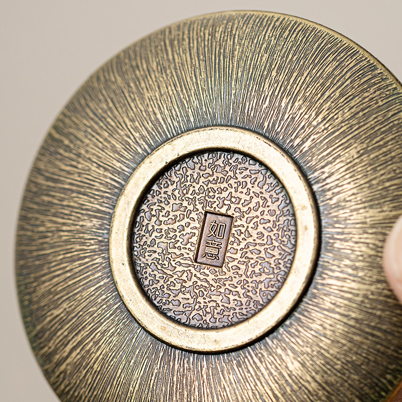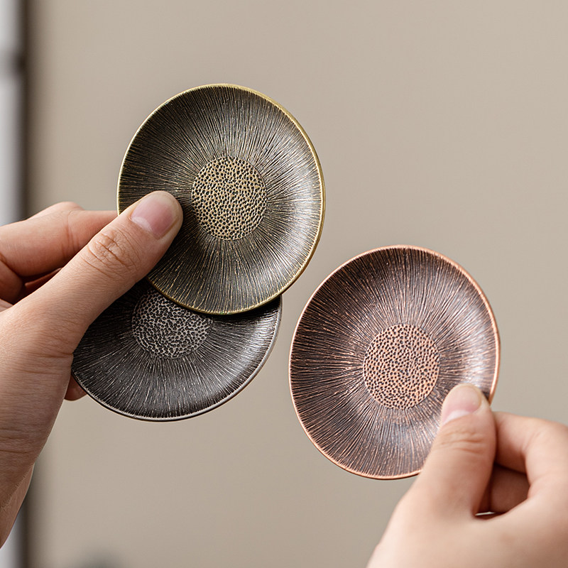 📚 中式仿古铜小杯垫合金隔热茶杯托做旧茶碟功夫茶具配件带收纳架子
