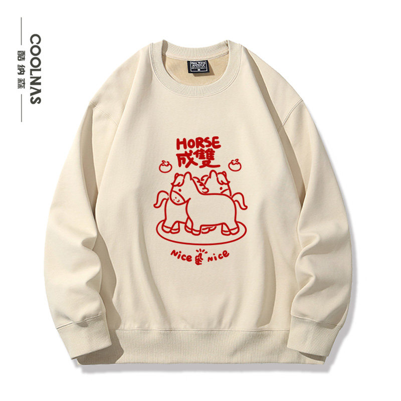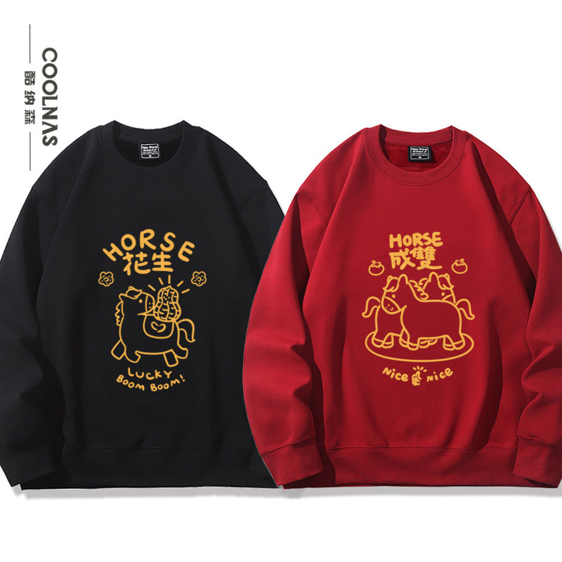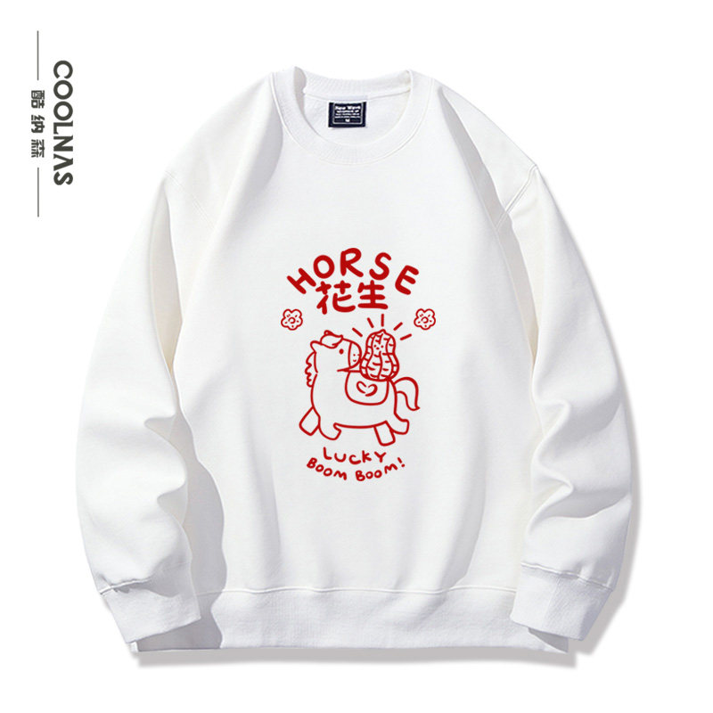 📚 horse花生好事成双趣味马年本命年新年男女秋冬圆领卫衣上衣服潮