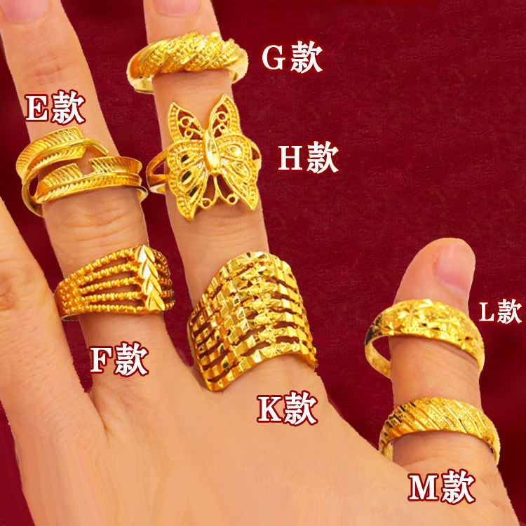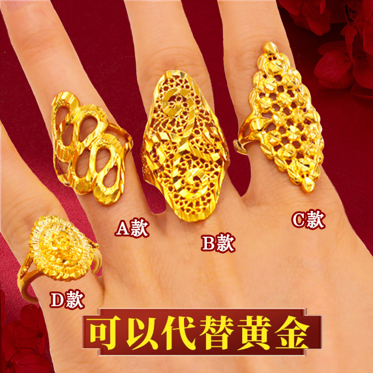 📚 越南沙金结婚戒指女款食指久不掉色夸张开口个性合金镀金仿真黄金