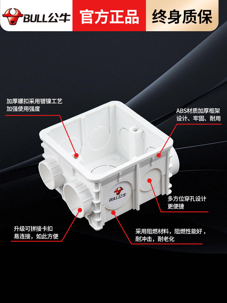 📚 公牛86型底盒加深加厚暗装墙壁开关插座暗装阻燃接线盒可拼装盒子