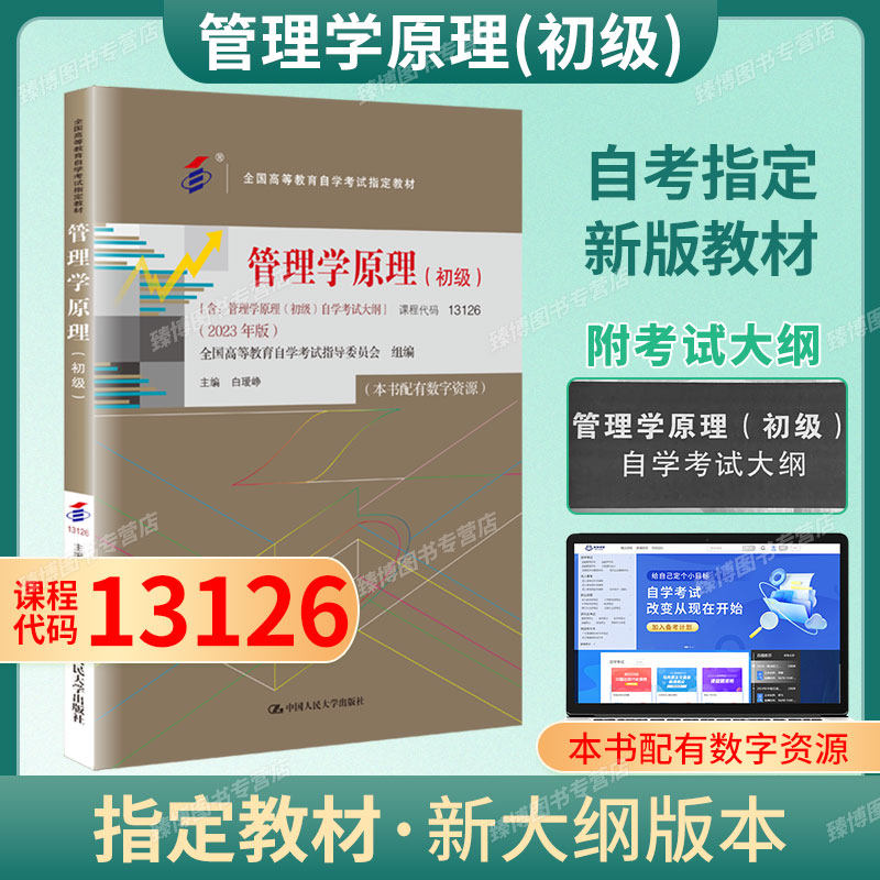 📚 成人自考13126管理学原理初级自考教材配数字资源白瑗峥2023版中国人民大学出版社9787300322025自学考试试卷自考真题一考通2026