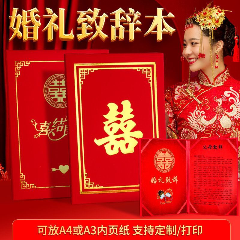 📚 婚礼致辞本父母新郎娘爸妈演讲话本女儿子厚纸硬壳红本主婚人致词本婚庆发言稿外壳订婚手卡喜字中式婚宴专用