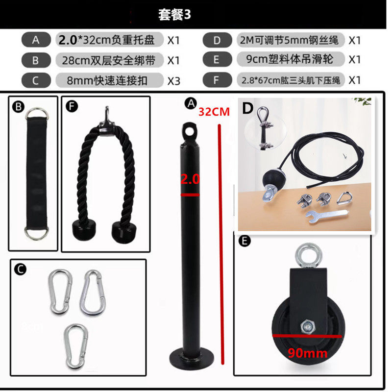 📚 钢丝绳滑轮配件拉力带肱三头肌自制健身器材家用高位下拉训练器械