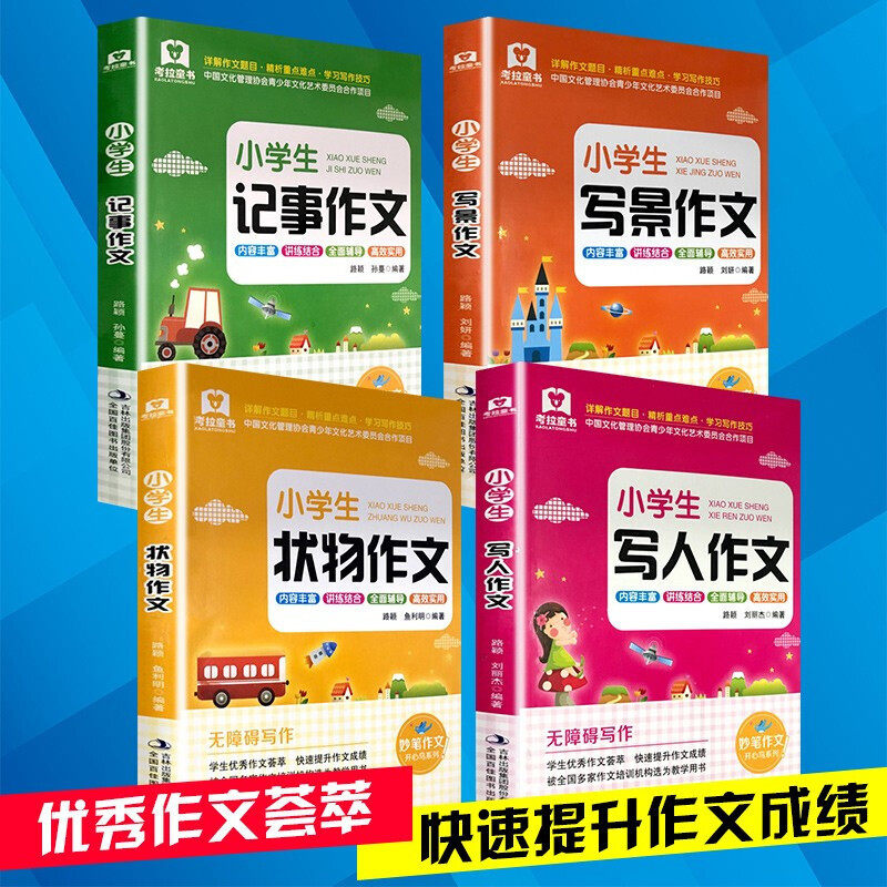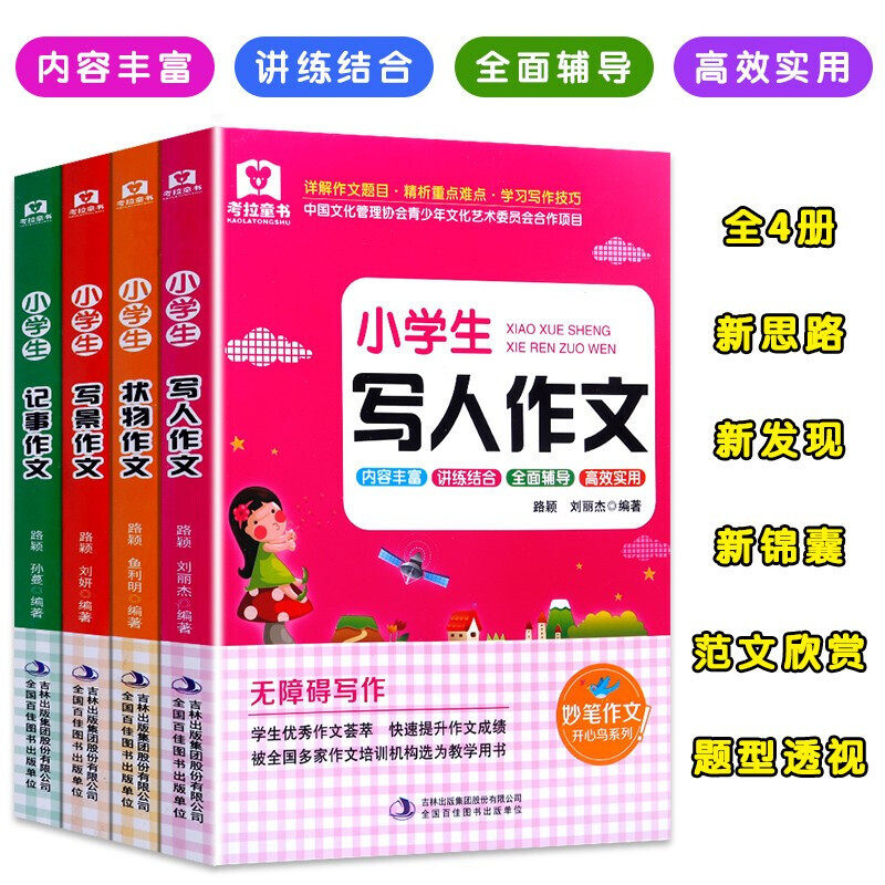 📚 全套4册小学生作文书 小学生写人作文+写景作文+ 状物作文+记事作文 3-6年级作文大全三四五六年级同步作文辅导