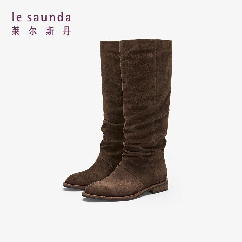 📚 [日落沙丘]莱尔斯丹秋冬新款时尚麂皮骑士靴高筒堆堆靴女5T30201