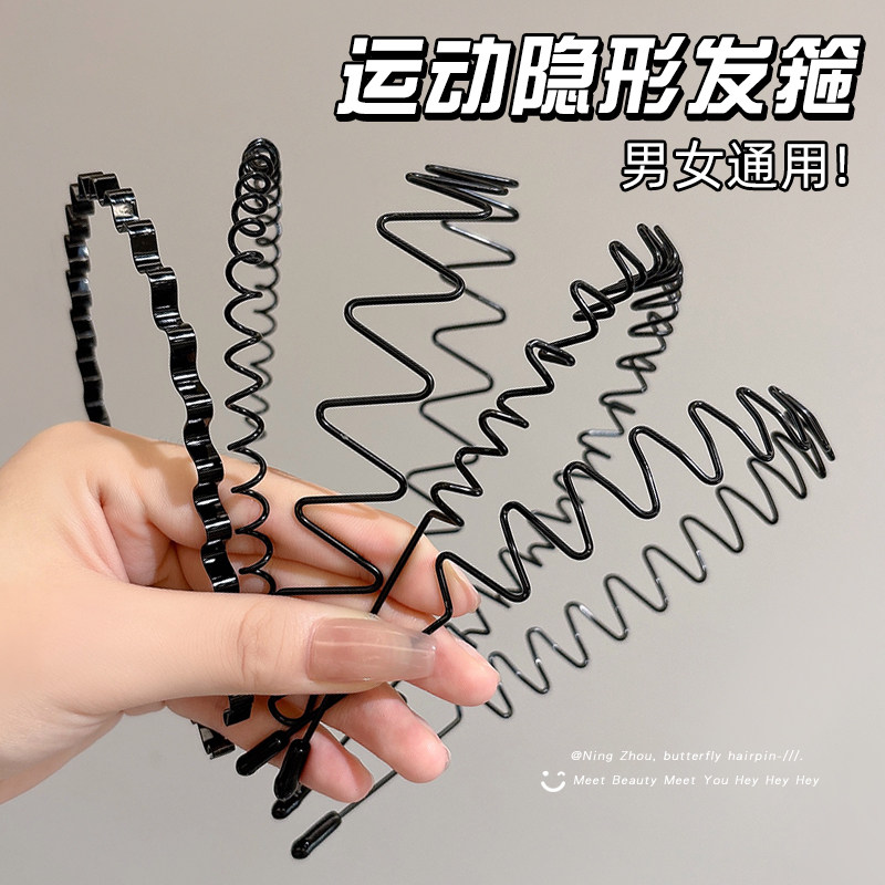 📚 男士黑色波浪发箍女款洗脸头箍短发过渡期神器隐形高颅顶发捆发卡
