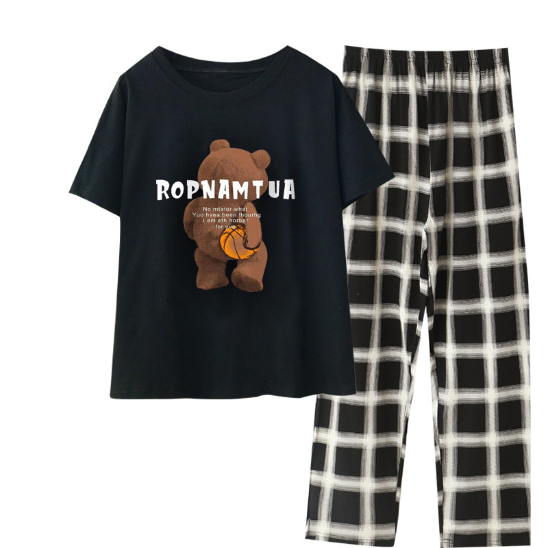 📚 设计师款!2024年新款睡衣男女纯棉短袖卡通春秋家居服套装可外穿