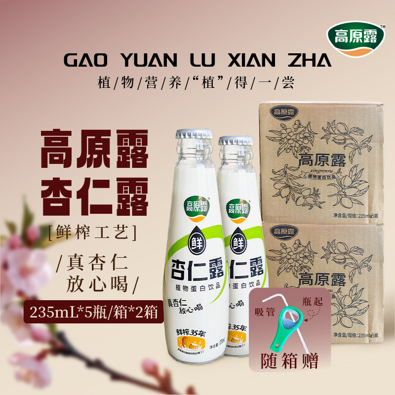 📚 内蒙古高原露鲜榨杏仁露235ml*5瓶*2箱植物蛋白饮料植物奶