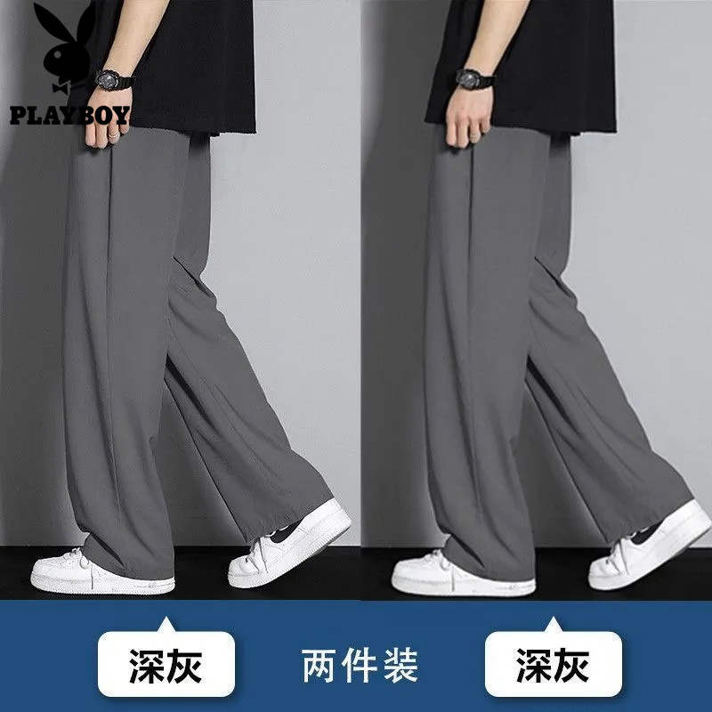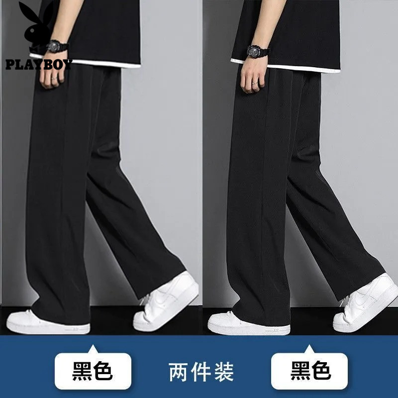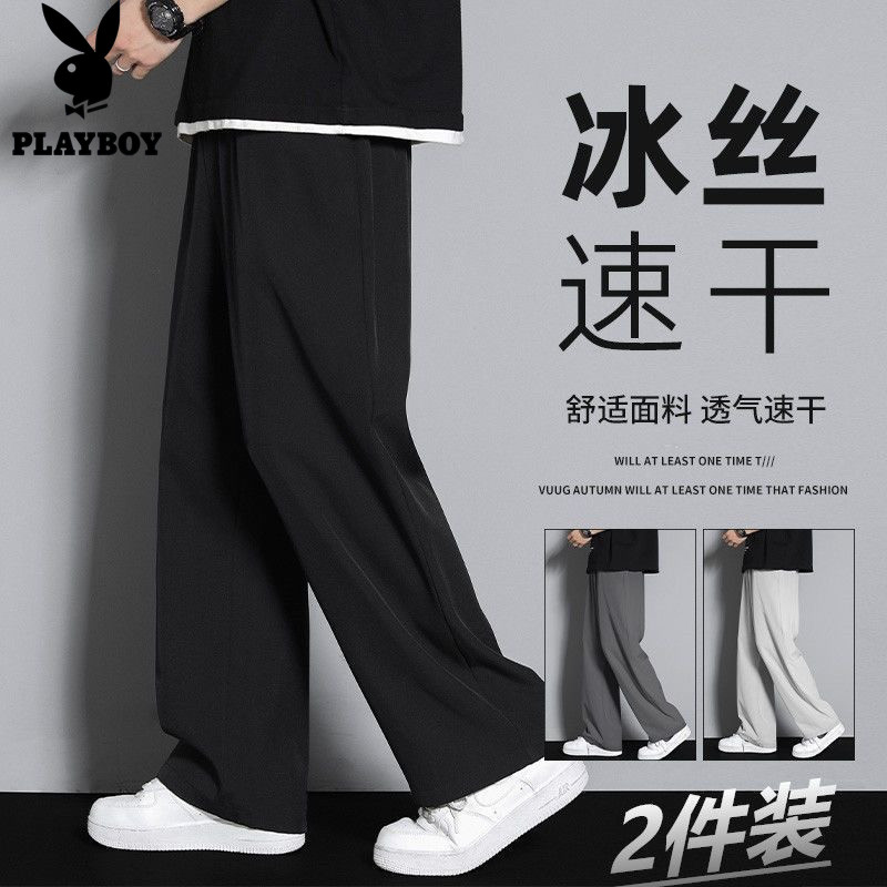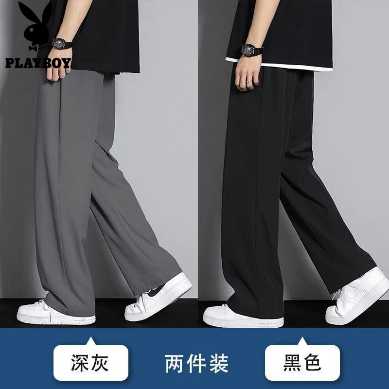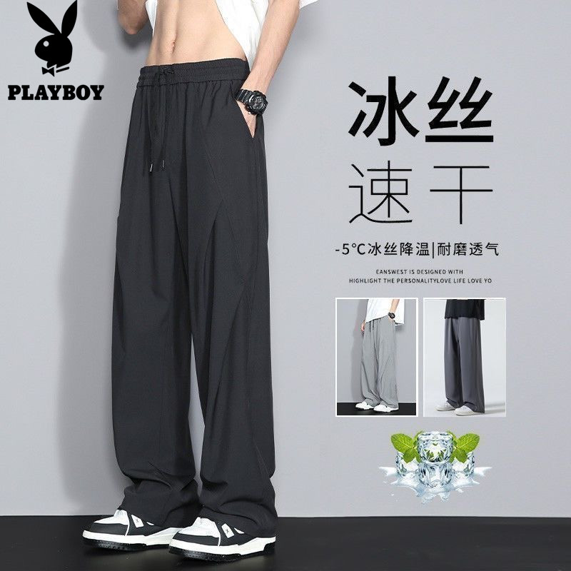 📚 花花公子冰丝男士夏季薄款透气新款宽松休闲运动直筒长裤潮流裤子