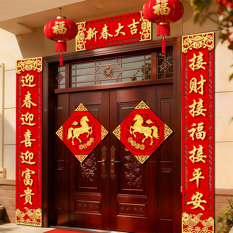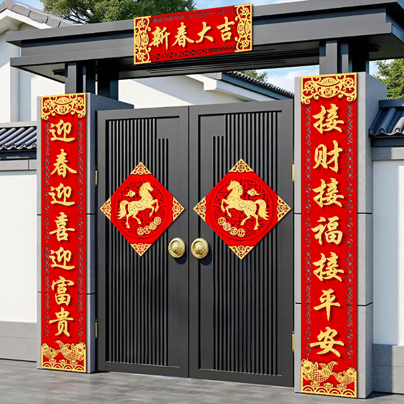 📚 农村自建房门联2026新春马年对联别墅大门入户门福字贴磁吸款春联