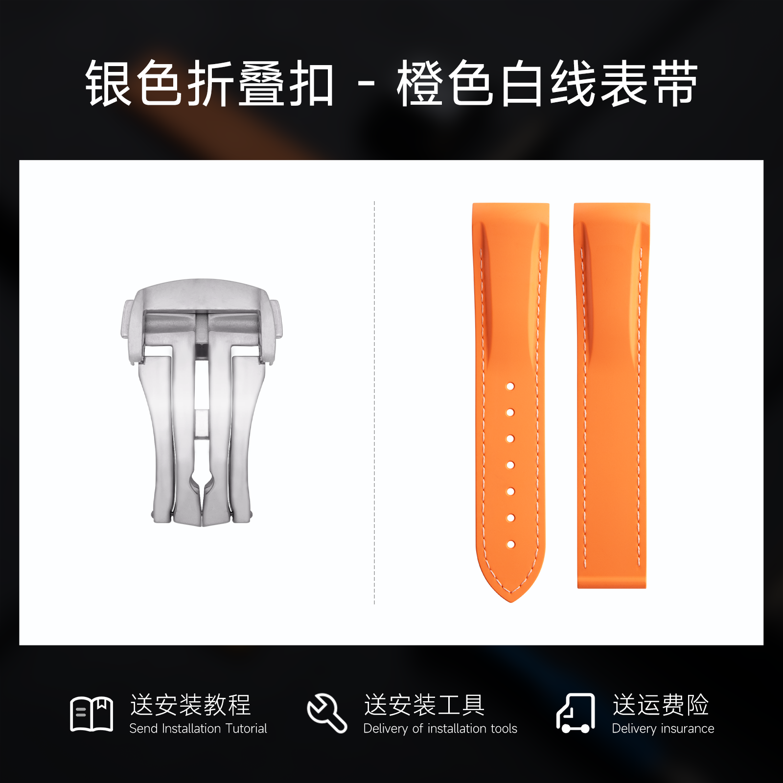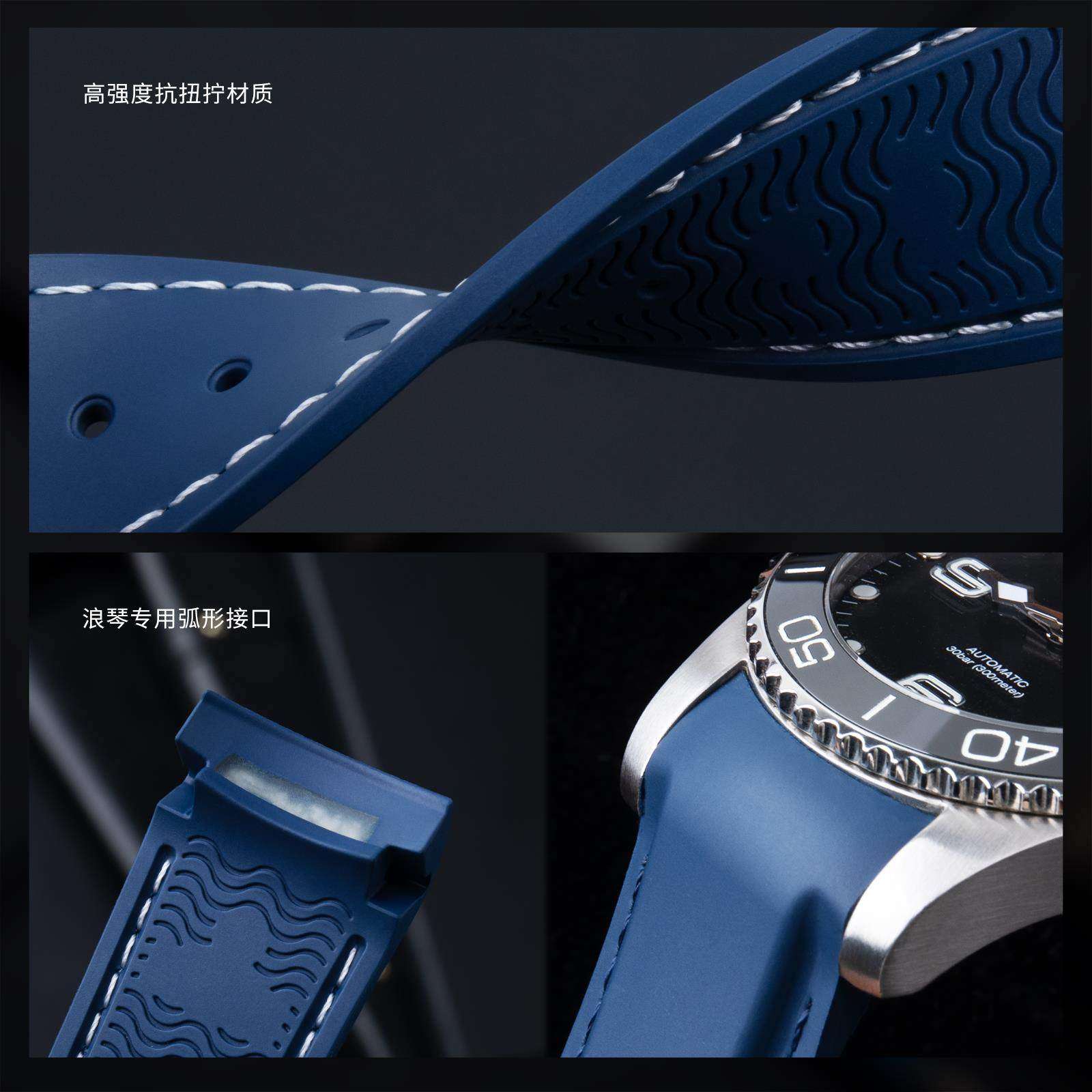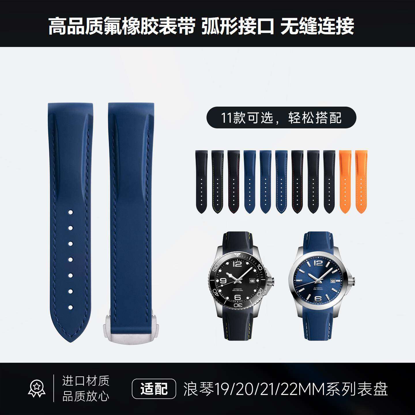 📚 弧形接口适用浪琴康卡斯GMT先行者祖鲁时间柔软氟橡胶表带19/21mm