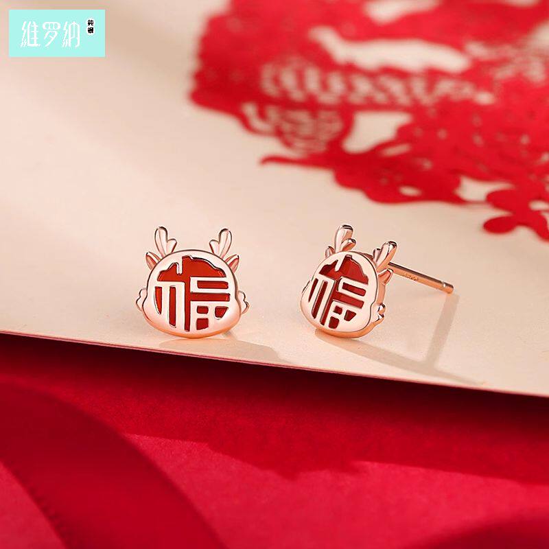 📚 维罗纳纯银十二生肖福气蛇耳钉女S925银复古国潮本命年中国风耳环