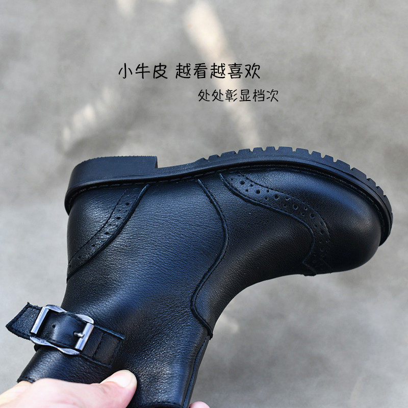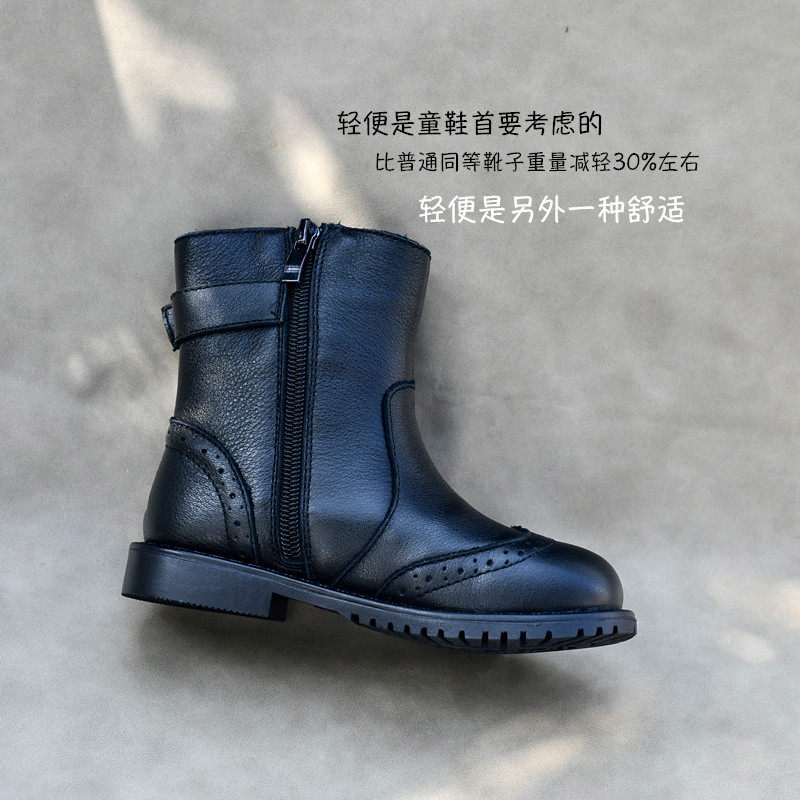 📚 贝然童靴女童长筒皮靴牛皮靴秋冬靴马丁靴中筒单靴公主高筒靴保暖