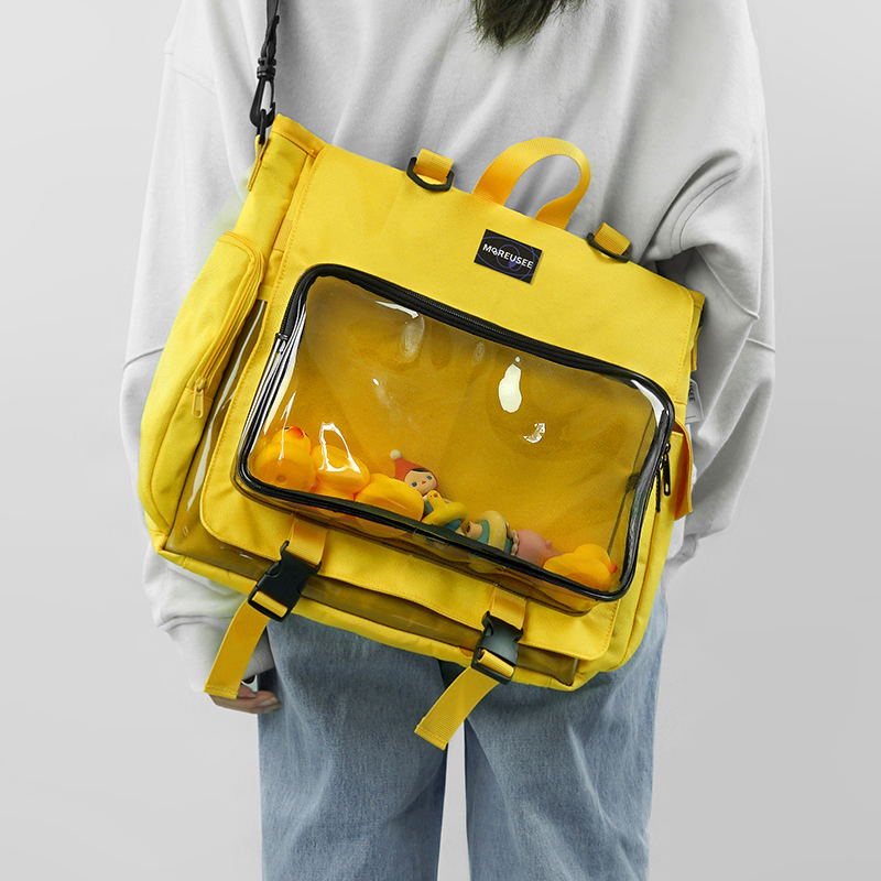 📚 木与石双肩斜挎三用痛包二次元大容量书包透明10cm娃包女手提包