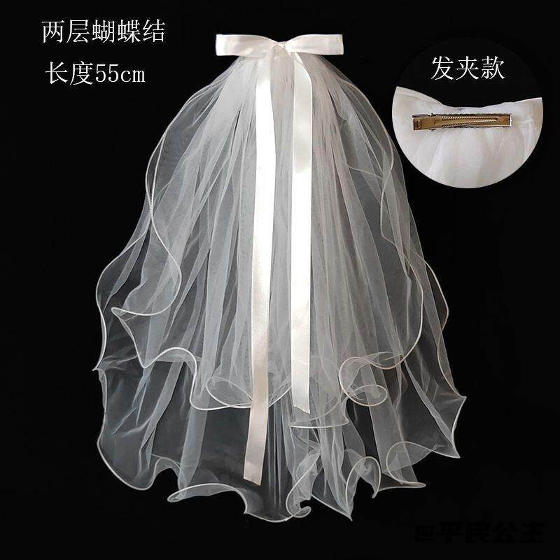 📚 结婚拍照结婚登记拍照头纱双层头饰超仙民政局披发发卡小头纱