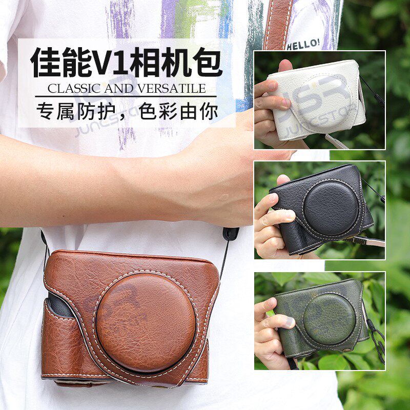 📚 适用佳能powershot v1底座皮质保护套r5相机包r10皮套r6相机配件