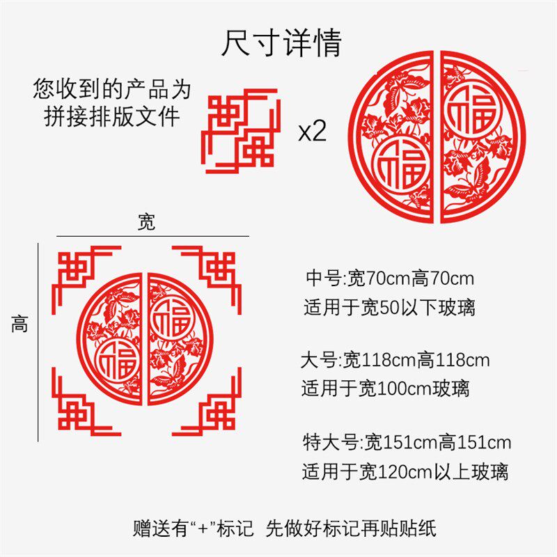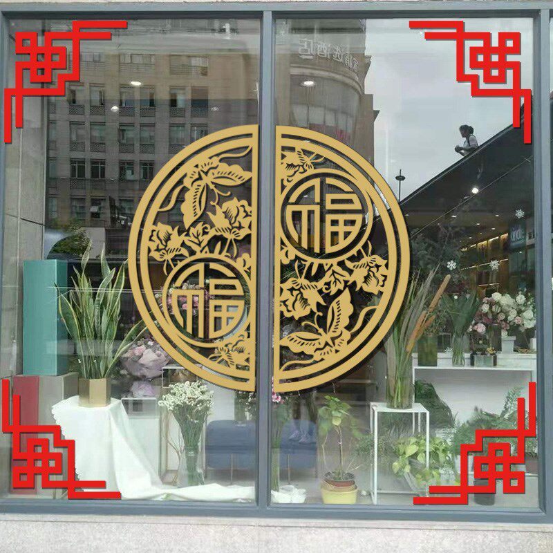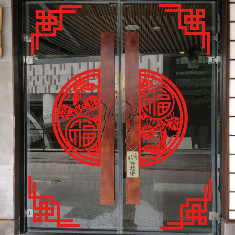 📚 新年店铺装饰门橱窗玻璃圆形福字福到了春节过年窗纸