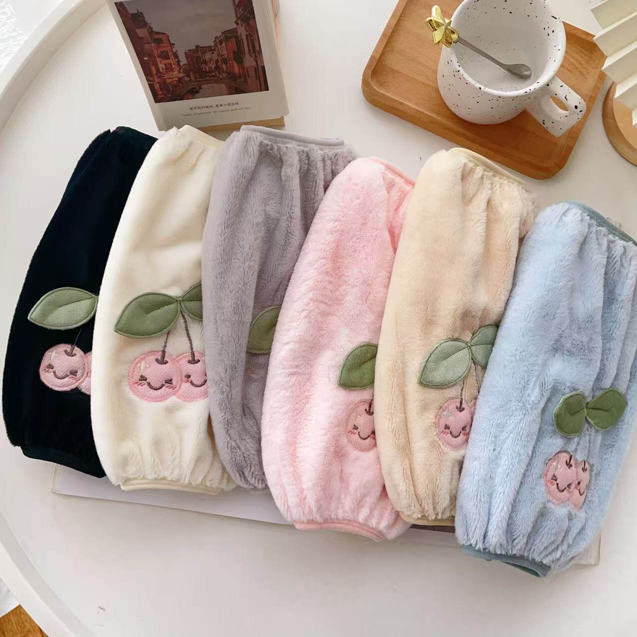 📚 2025新女中长款袖套毛绒保暖羽绒服专用办公室大学生护袖白色可爱