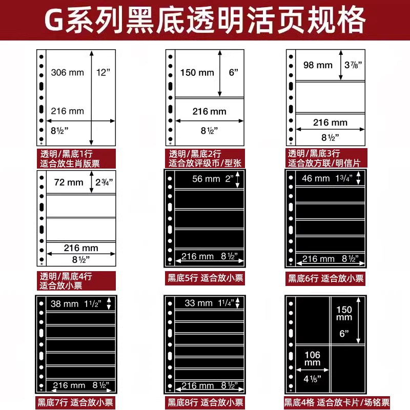 📚 德国灯塔进口G系列透明/黑底评级活页纸钱币人民币集邮册邮票插页