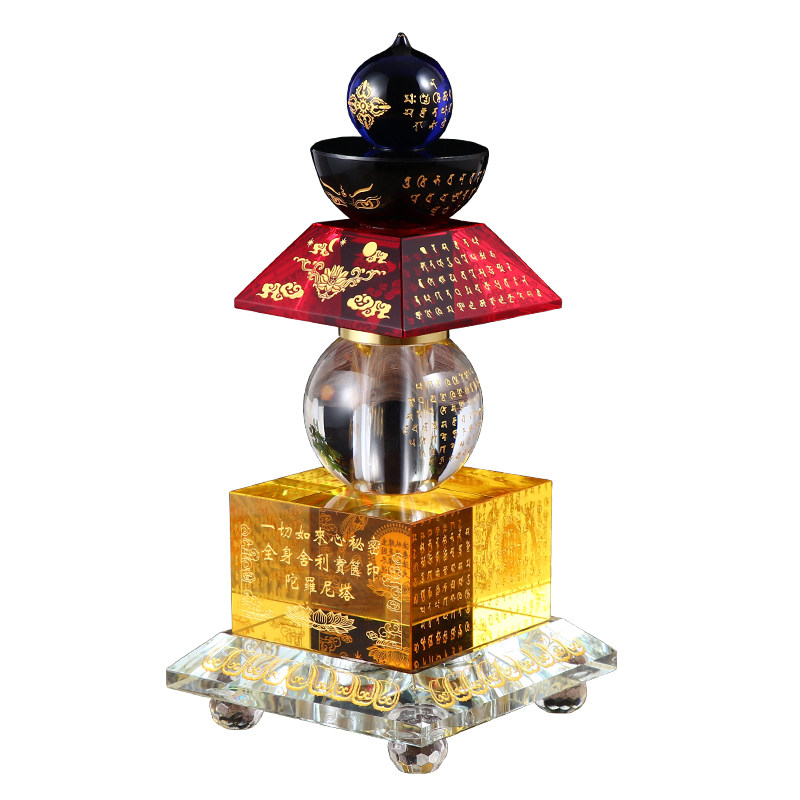 📚 水晶舍利塔大小号多款搭配led七彩发光底座 铜扣五轮佛塔装藏摆件