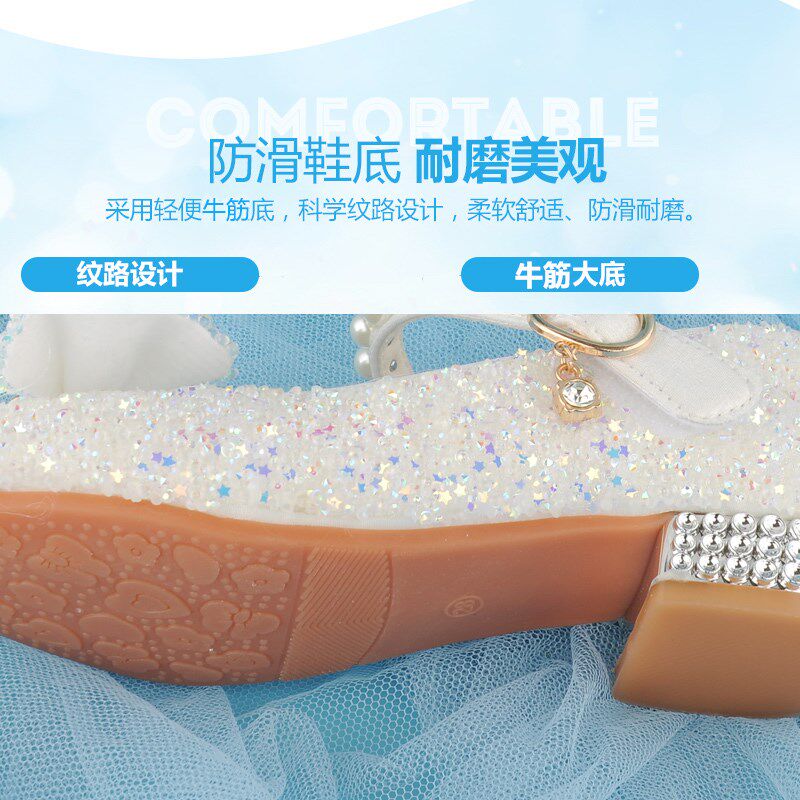 📚 儿童小白鞋女童小主持人晚礼服高跟鞋水晶公主风银演出皮鞋配礼服