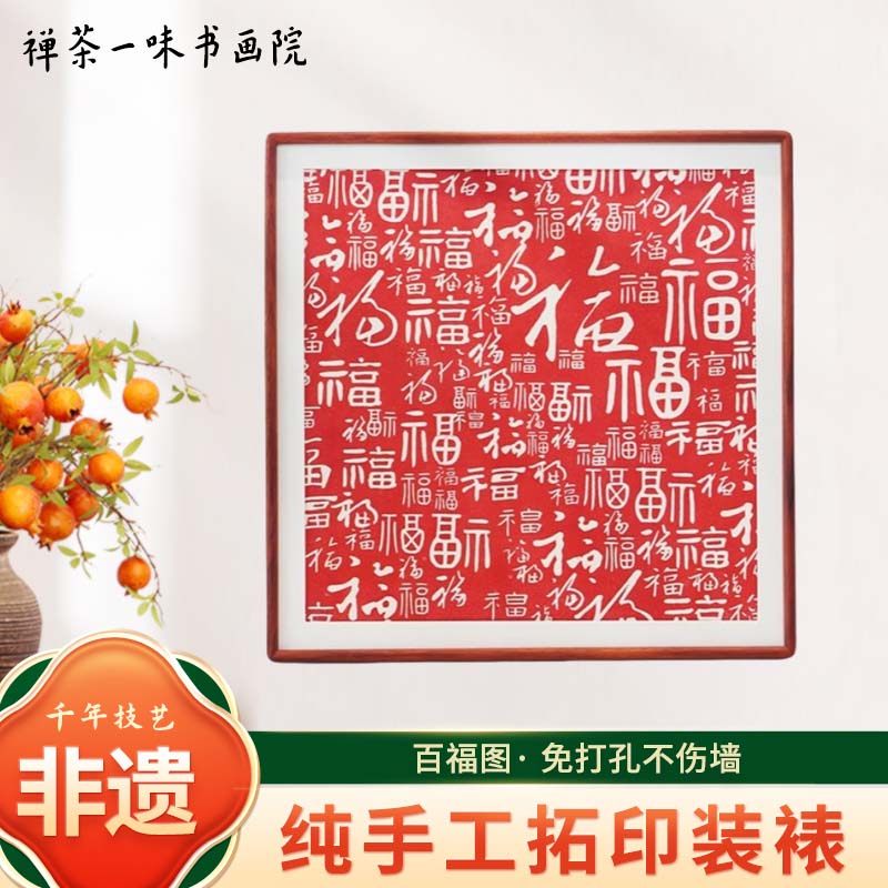 📚 百福图纯手工拓印朱砂拓片入户门装饰客厅玄关挂画福字中式装饰画