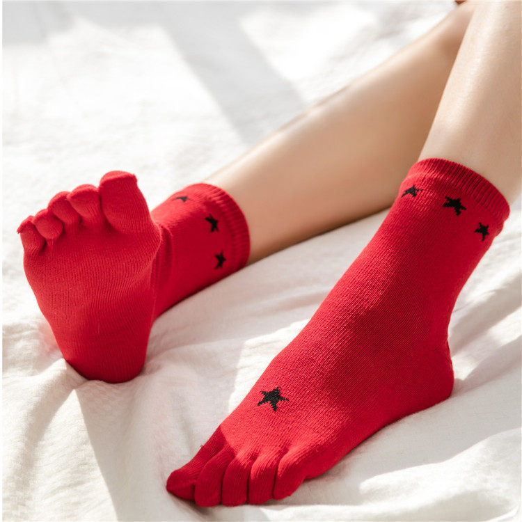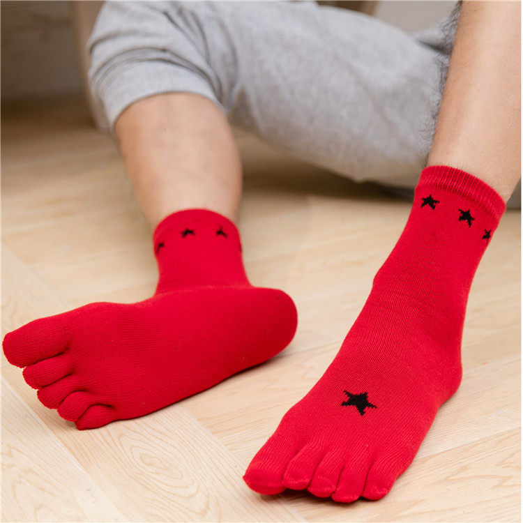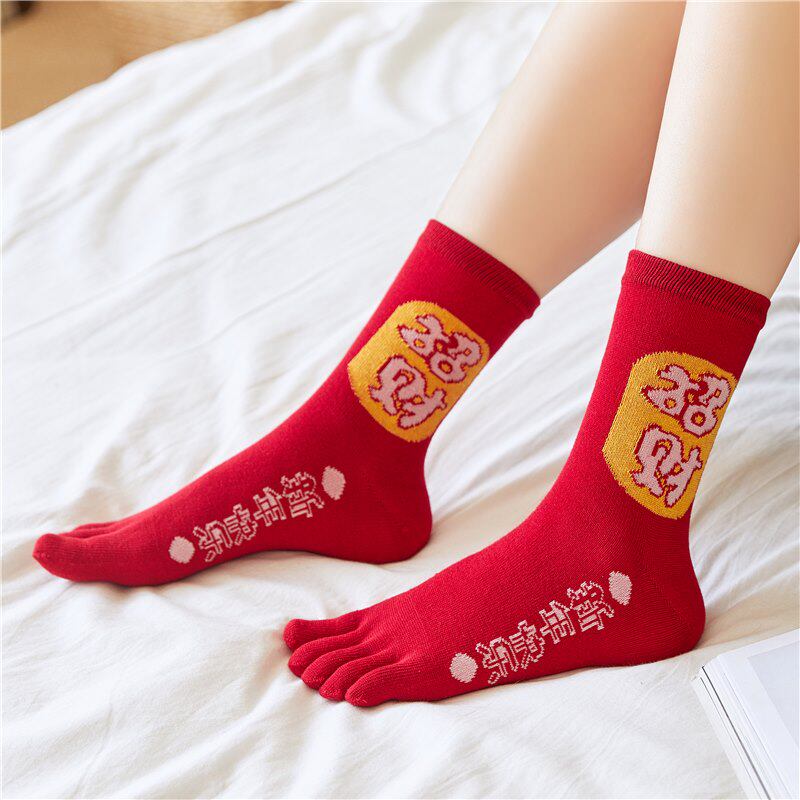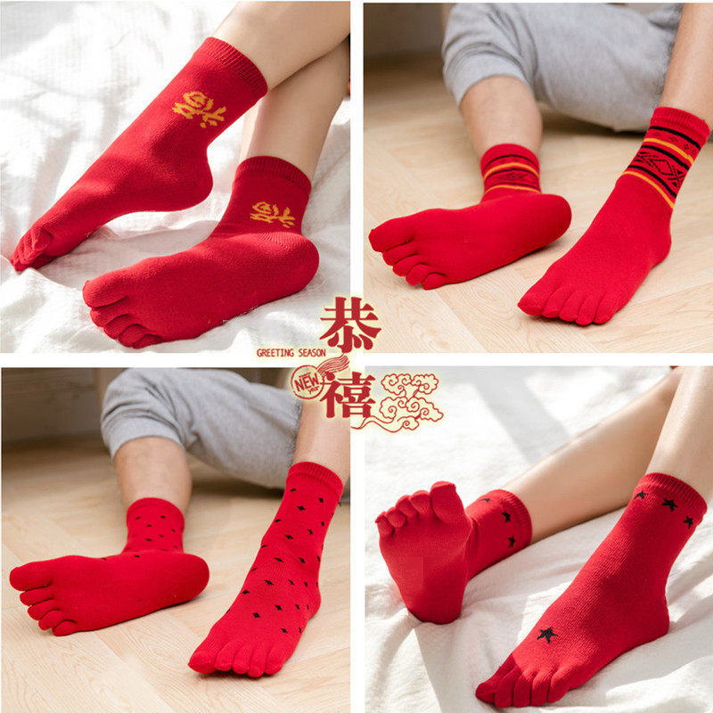 📚 本命年红色好运袜纯棉男士女士情侣五指袜/发财分脚趾袜/趾袜好运
