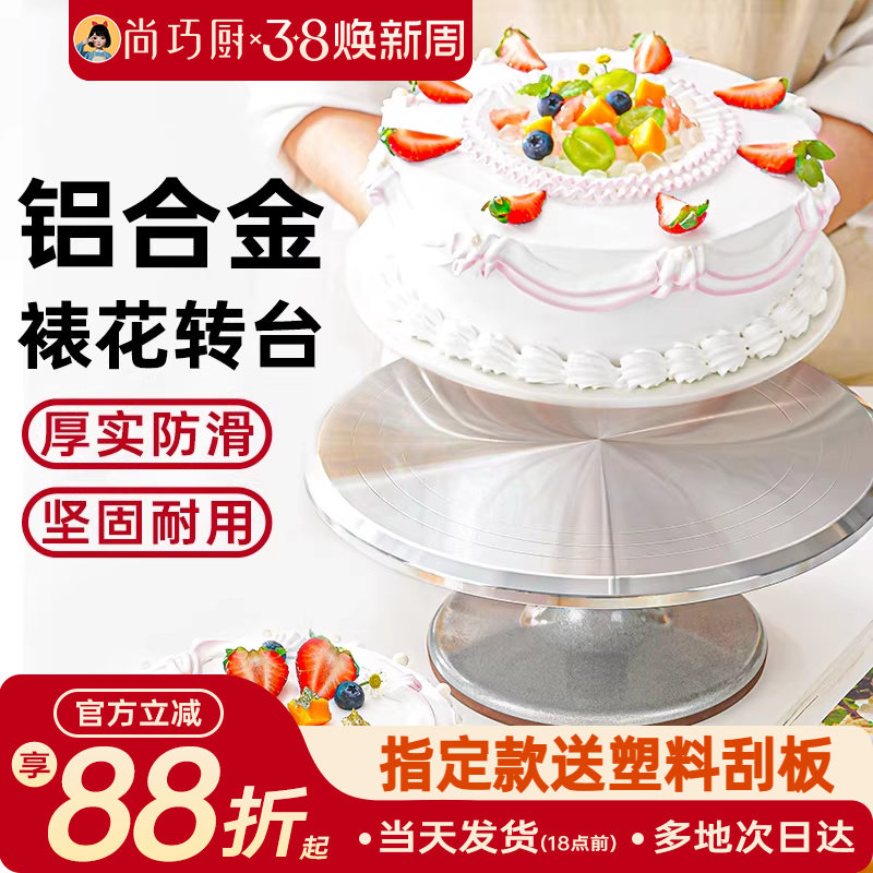 📚 展艺铝合金蛋糕转台裱花转盘生日家用烘焙工具抹面托盘防滑旋转台