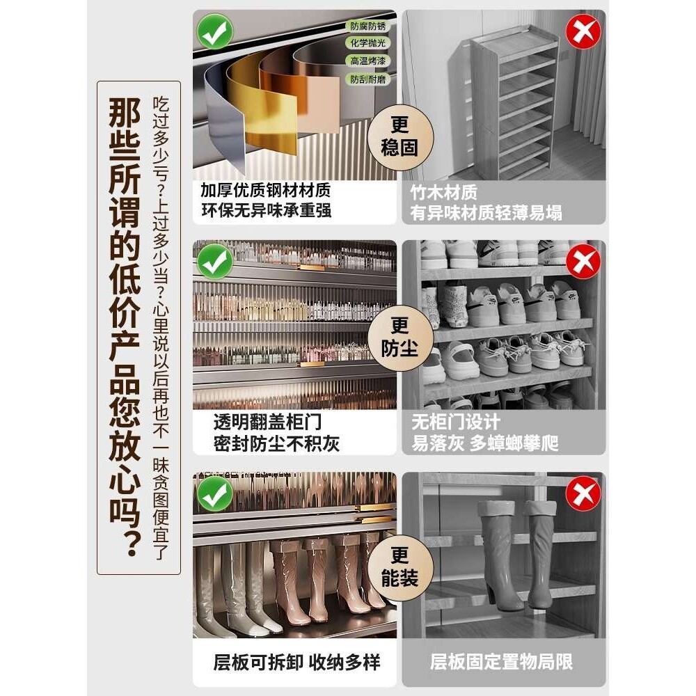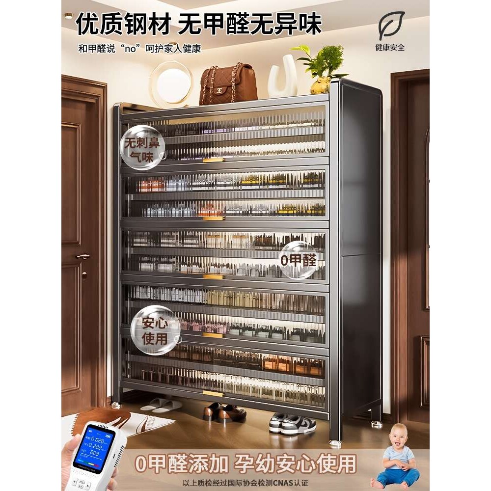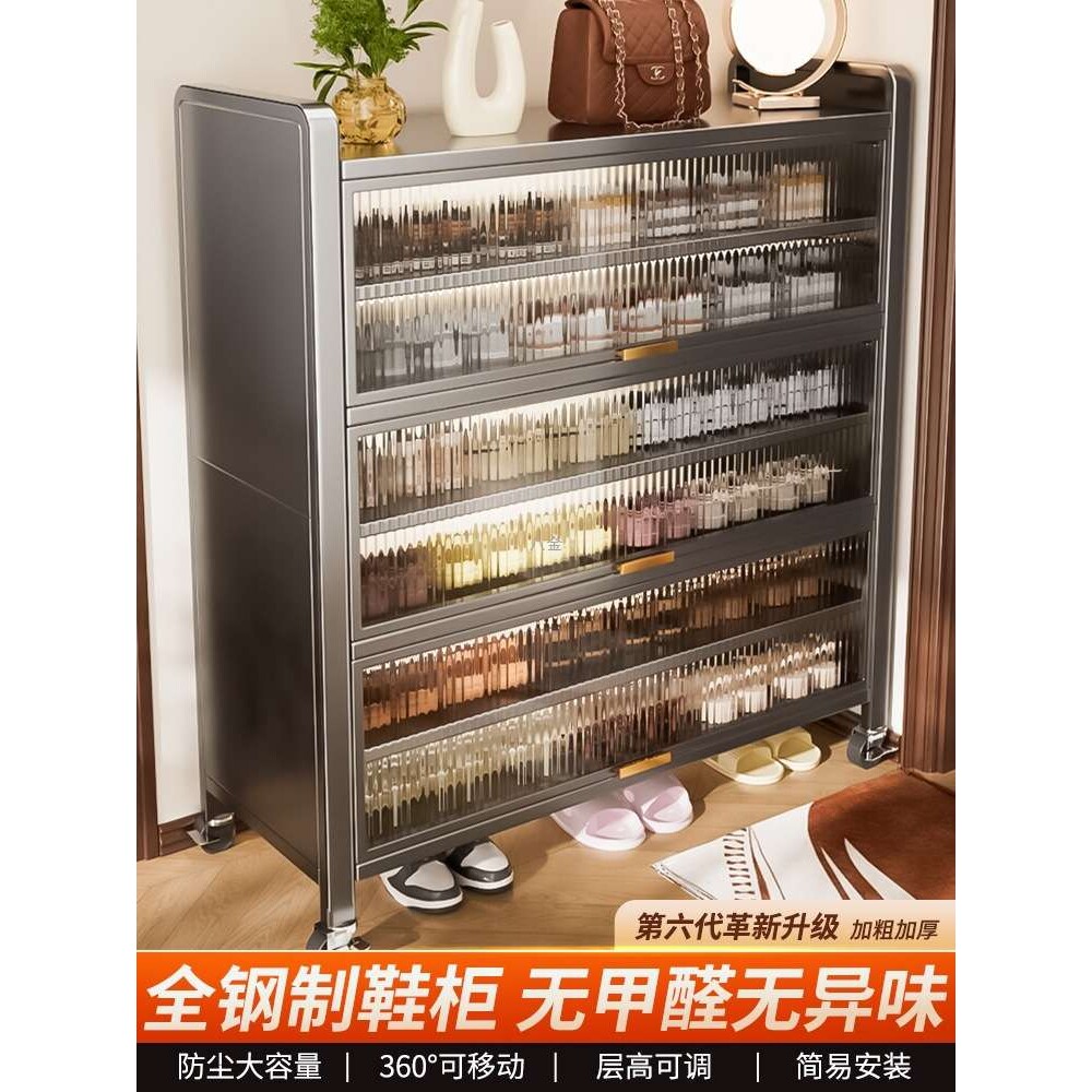 📚 不锈钢超薄鞋柜家用一体靠墙多层防尘钢制鞋架门口入户玄关收窄柜