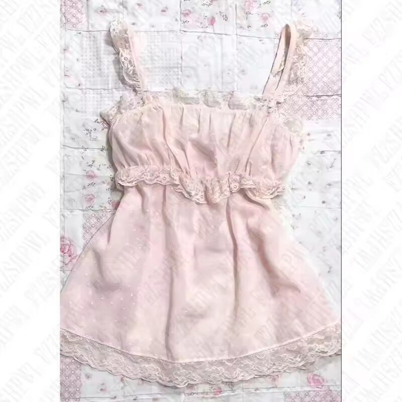 📚 Sweet top新款甜美清新纯色蕾丝百搭性感吊带连衣裙女式上衣百搭