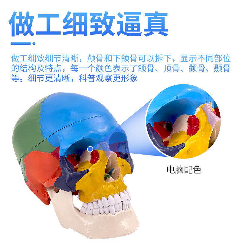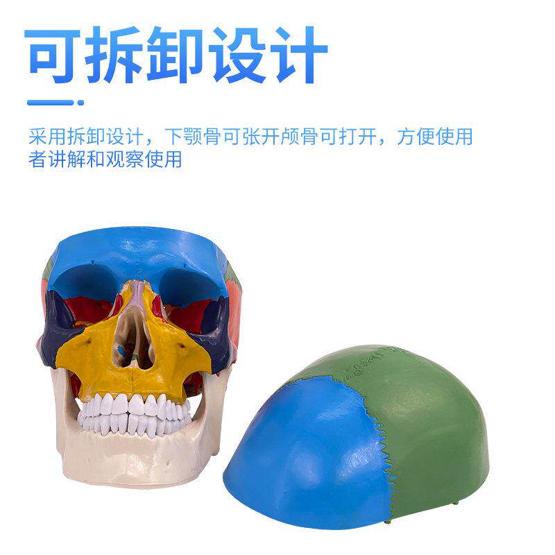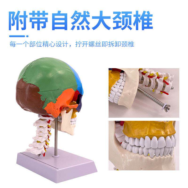 📚 人体头颅骨着色模型 彩色头骨性分离模型带颈椎上色区分22块区域