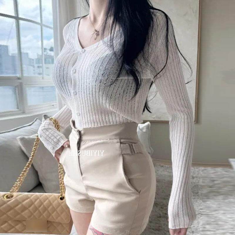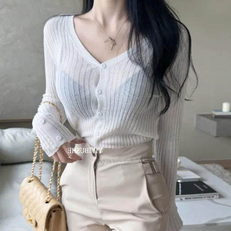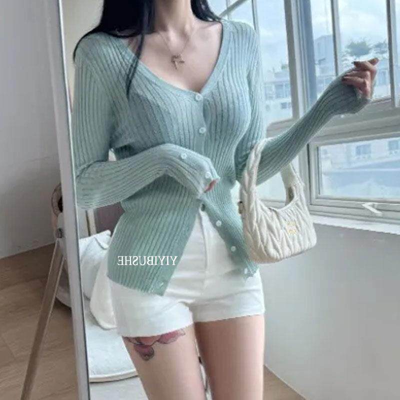 📚 当天发51STUDIO自制ZM120清新薄荷色~超显白微透修身长袖针织开衫