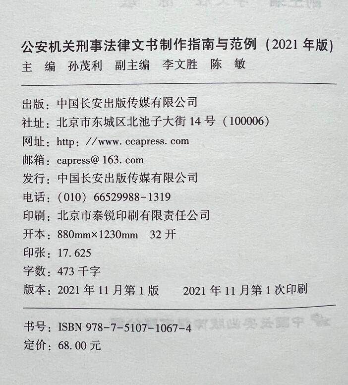 📚 【官方正版】公安机关刑事法律文书制作指南与范例 2021 孙茂利 警察办理刑事案件书籍 中国长安出版社9787510710674